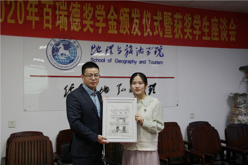 学生代表汇报结束后举行了交流座谈。面对同学提出的关于企业在招纳人才所需特质时,程伟表示,他更倾向于具有正直人品、认真负责、与人相处和谐的人才。他鼓励同学们要利用好实习时间,在实习中积累经验不断成长,为以后的就业及创业打下良好的基础。城乡规划专业获奖学生代表把自己手绘的皖南宏村实习实践写生作品作为礼物赠送给程伟学长。院党委书记贾冠忠在讲话中表达了对程伟院友的感谢、敬佩与自豪。他以校史院史为例,鼓励同学们积极进取努力学习,并再次强调了设立百瑞德奖学金的积极作用,并祝愿广大毕业校友在今后的事业发展中取得更大进步。