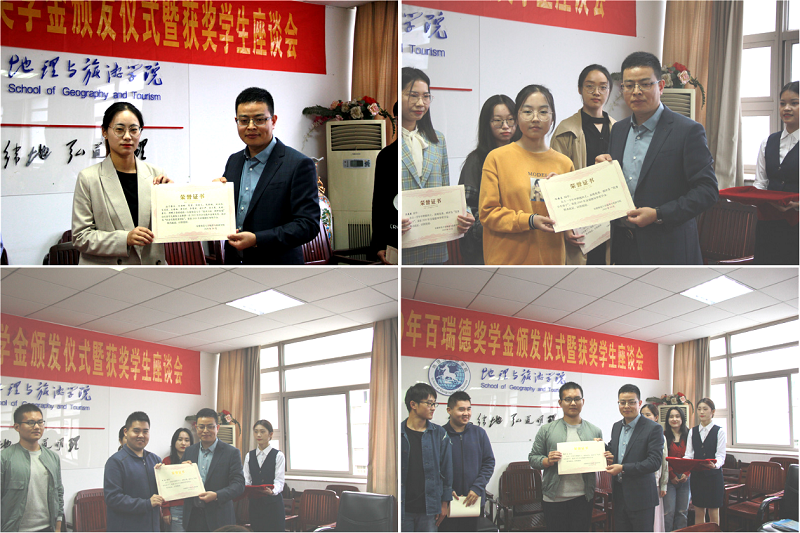 贡植斌宣读了首届百瑞德奖学金颁发决定,并由程伟为获奖个人及团队颁发荣誉证书。颁发仪式结束后,获奖学生及团队代表上台发言。2017级城乡规划专业杨凯同学提出,自己将继续“潜心修学练就过硬本领,脚踏实地奉献无悔青春”;2017级地理科学专业高宇凡同学表示,自己将坚持“夯实基础,严谨负责,完善自我,服务社会,做有理想、有担当的青年人”的理念;“情系川皖,圆梦巴蜀”山区留守儿童线上支教团承诺,支教行动将薪火相传,与山区孩子们一同成长;“基于大数据的城市内部情感旅游流时空模式”调研团队结合当下实际情况做出了精彩的汇报展示。
