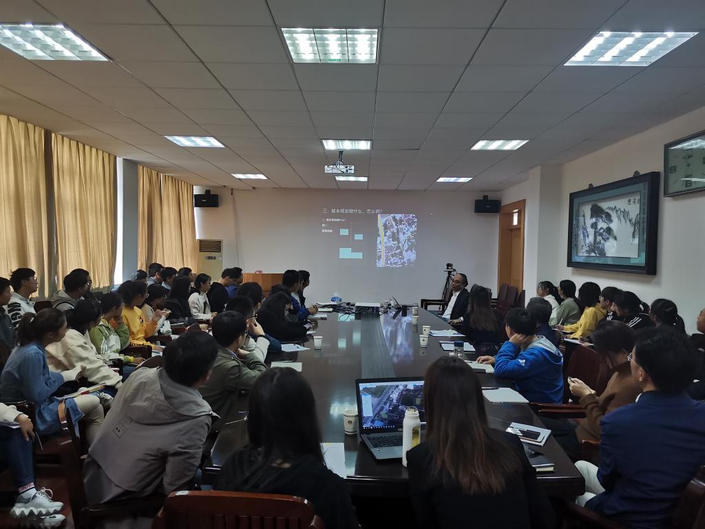副院长曹卫东老师主持,城乡规划专业负责人杨兴柱老师及教师代表、20级城乡规划新生、高年级学生代表以及新生辅导员参加了此次讲座。
