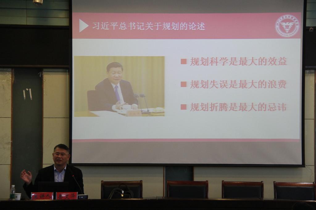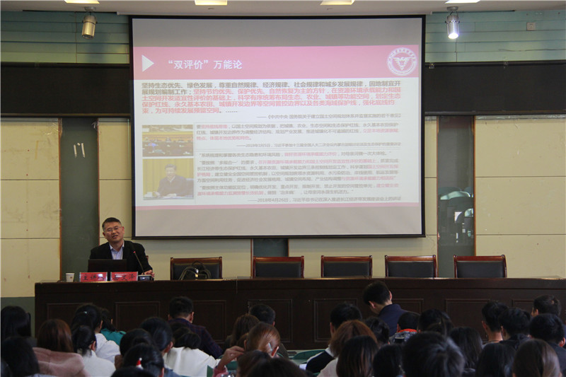 副院长曹卫东主持,院党委副书记乔静、土地资源管理专业负责人费罗成、相关专业的领导老师、新生辅导员以及20级土地资源管理专业新生、18、19级土地资源管理全体学生和城乡规划专业学生代表聆听了此次报告。
