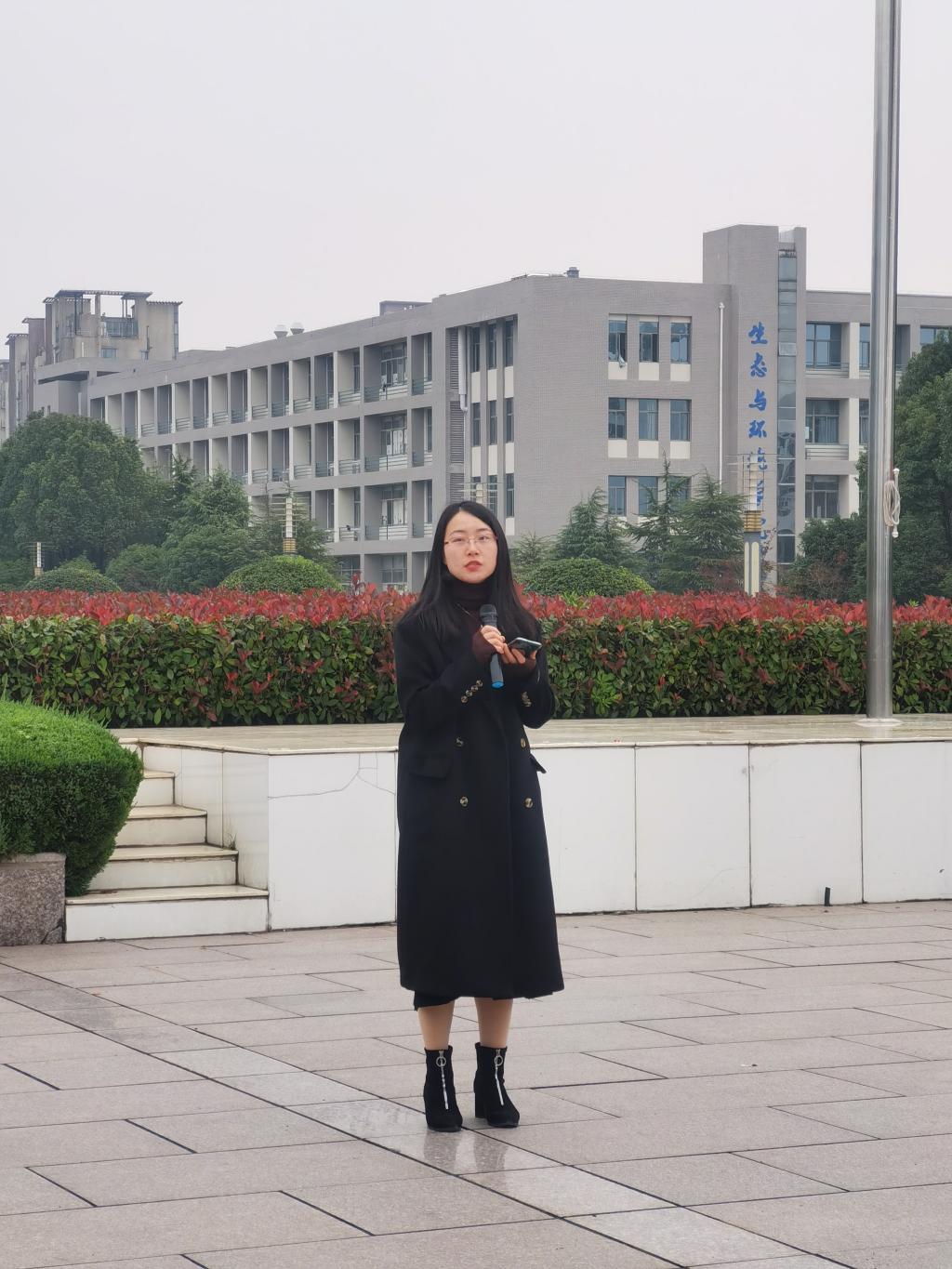 议程第二项:地理科学类二班答采薇同学做国旗下讲话。答采薇同学以《树立远大理想,勇于砥砺奋斗》为题,和同学们分享要如何将自己打造成有山的稳重、水的灵秀的地旅专业人才,她强调首先要学会时间管理,充分利用时间;其次要脚踏实地,持之以恒地践行;最后要学会自律,养成良好的习惯,从而成为一名“经天 纬地 弘道 明理”的地旅人,“厚德 重教 博学 笃行”的师大人。