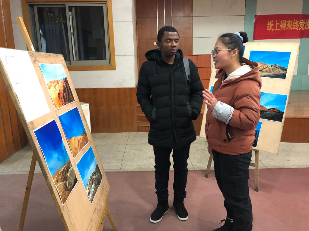 野外实习成果展览期间,领导、老师、同学们积极观展,值班讲解员对参观者所提的问题进行耐心讲解,详细介绍野外实习目的、路线与内容。野外实习成果展取得了很好的反响。