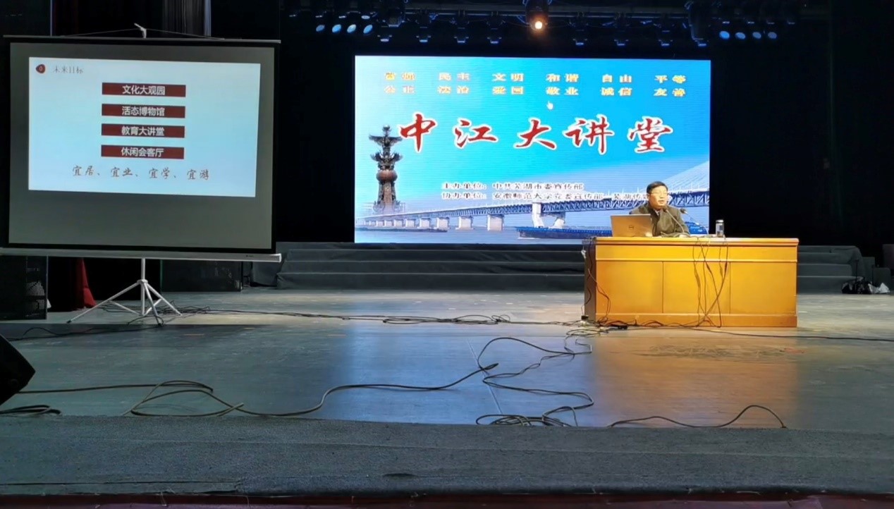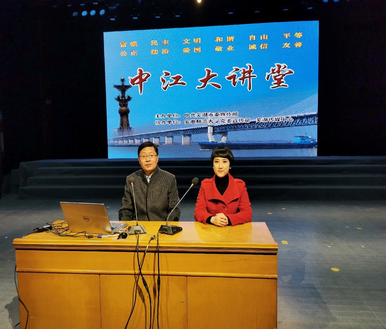 教授、博士生导师杨效忠,应邀参加由芜湖市委宣传部主办、安徽师范大学党委宣传部和芜湖传媒中心协办的“中江大讲堂”在芜湖市百花剧场开讲,讲座主题为“芜湖古城的昨天、今天和明天”。当天,芜湖新闻网和今日芜湖APP均进行了全程视频直播,现场直播参与人数超过1.6万人。