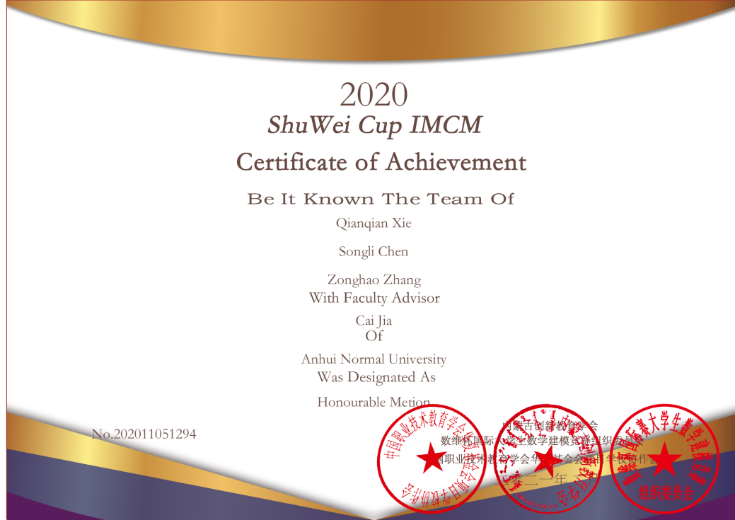 贾蔡博士指导的2019级地理信息科学、2019级地理科学(拔尖班)2支团队分别荣获国际赛一等奖(Meritorious)和国际赛二等奖(Honourable Metion)。