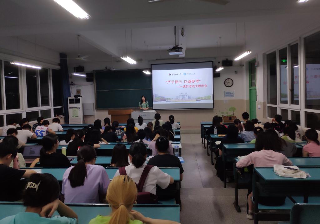 召开主题班会,夯实思想基础。为进一步强化学生诚信考试意识、规范学生考试行为,学院各年级辅导员先后召开了诚信考试主题班会,解读学校考风考纪要求和违规违纪后果,扎实推进学院考风考纪教育行动方案,形成不敢违纪、不能违纪、不想违纪的清风正气。