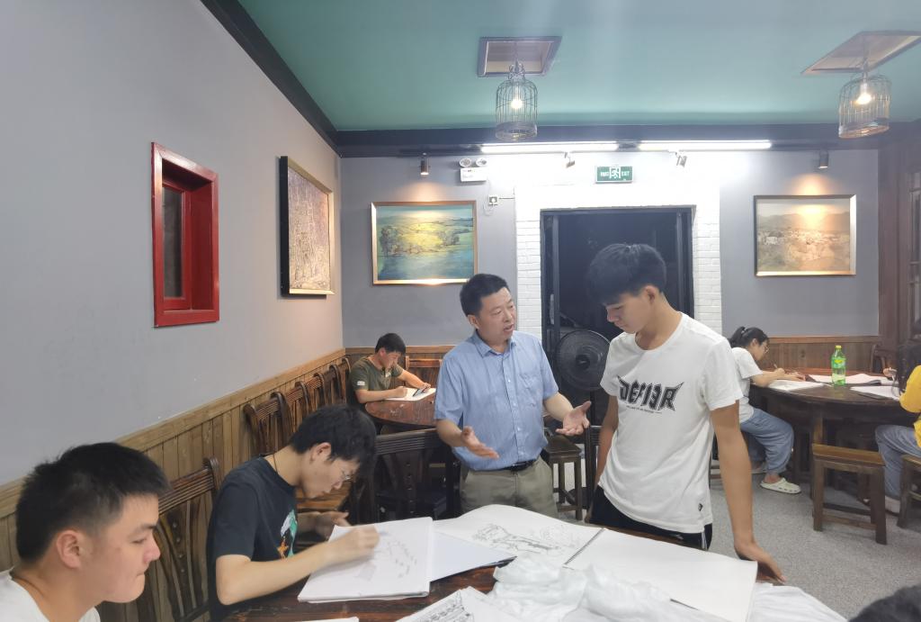副院长曹卫东、城乡规划专业负责人杨兴柱来到黄山黟县宏村慰问指导老师和同学们,了解实习进度和实习情况。曹卫东和杨兴柱走进同学中,查看大家的学习成果,给大家悉心指导并深入交流,同时给予表扬和鼓励,期待大家学有所得。