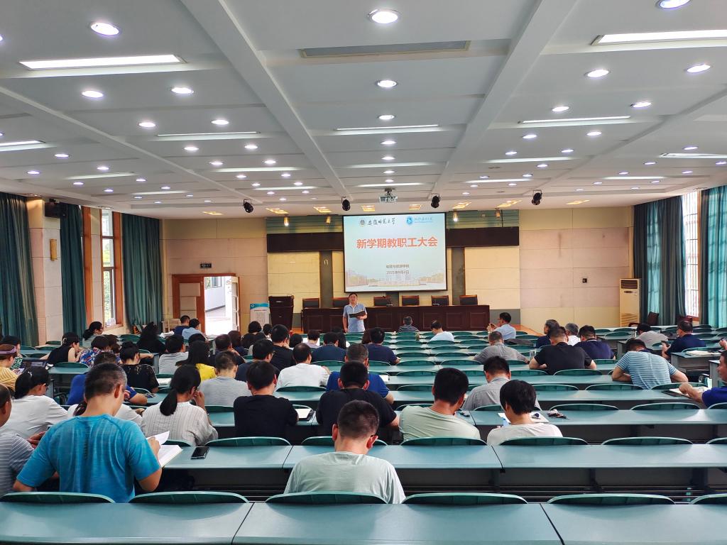 新学期第一次教职工大会在学院实验楼101教室召开。学院全体教职工参加大会,会议由院长苏勤主持。