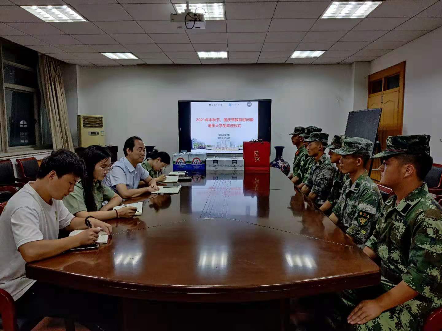举办2021年退伍大学生欢迎仪式暨中秋节、国庆节慰问会。学院党委副书记乔静、全体本科新生辅导员、以及球探足球比分app