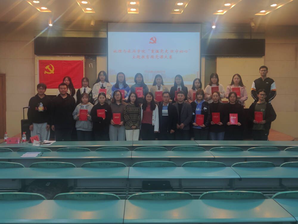 “重温党史,恒守初心”党史学习教育微党课大赛在学院实验楼101报告厅举行,院党委秘书王美、本科生党支部书记代表齐小学、辅导员赵佳慧、刘少杰参加活动并担任评委,学院学生党员培训班和入党积极分子培训班代表现场观摩学习。