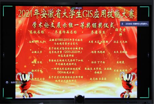、资源环境与地理信息工程安徽省工程技术研究中心协办的2021年安徽省大学生GIS应用技能大赛在我校成功举办。本届大赛安徽省开设地理专业的14所高校全部参加本次比赛,参赛队伍达110支,并得到了易智瑞信息技术有限公司的大力支持。疫情防控常态化形势下,大赛采取线上方式举行。