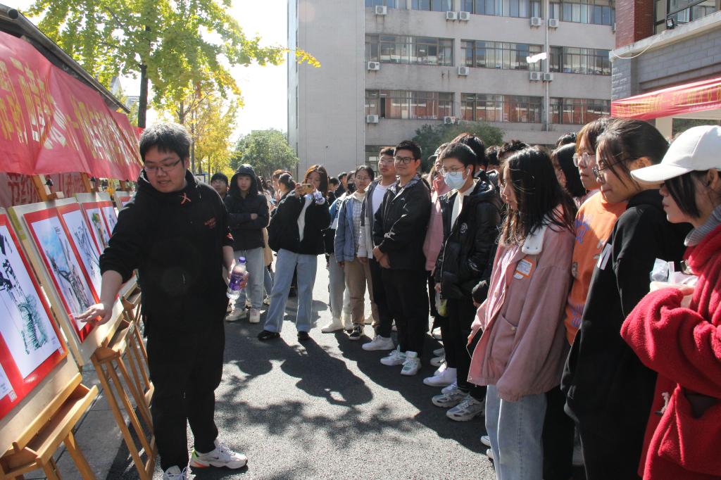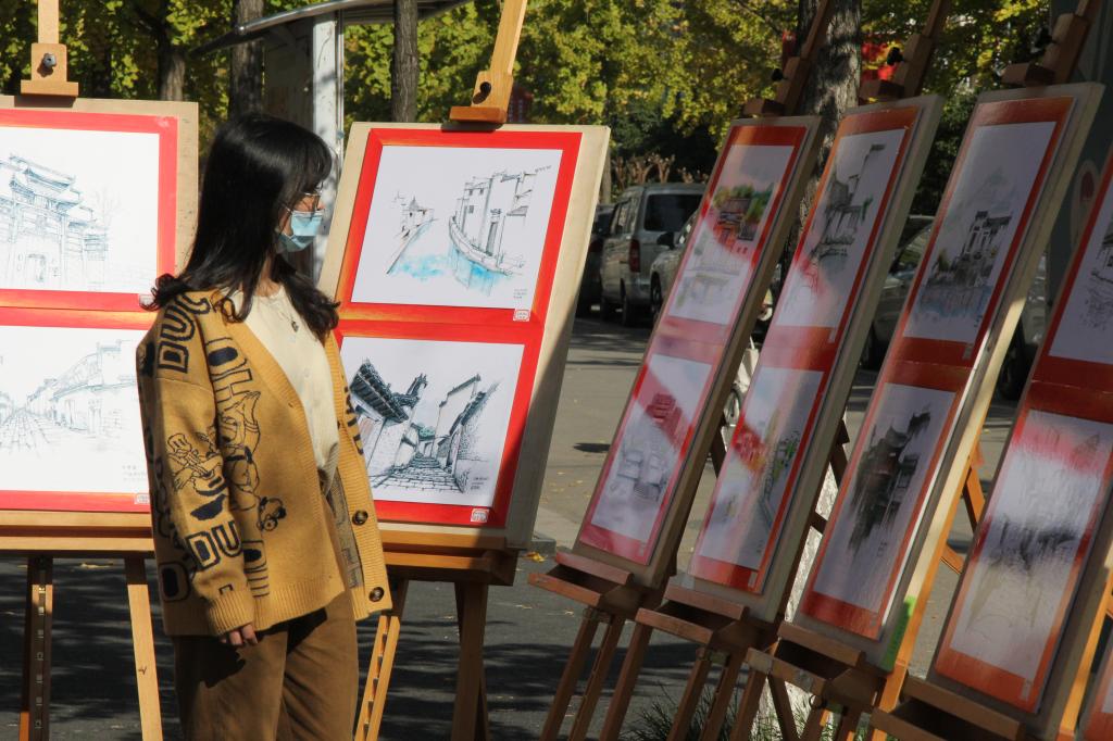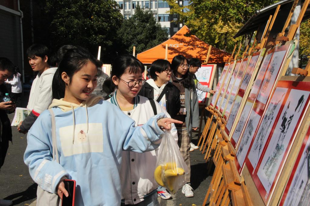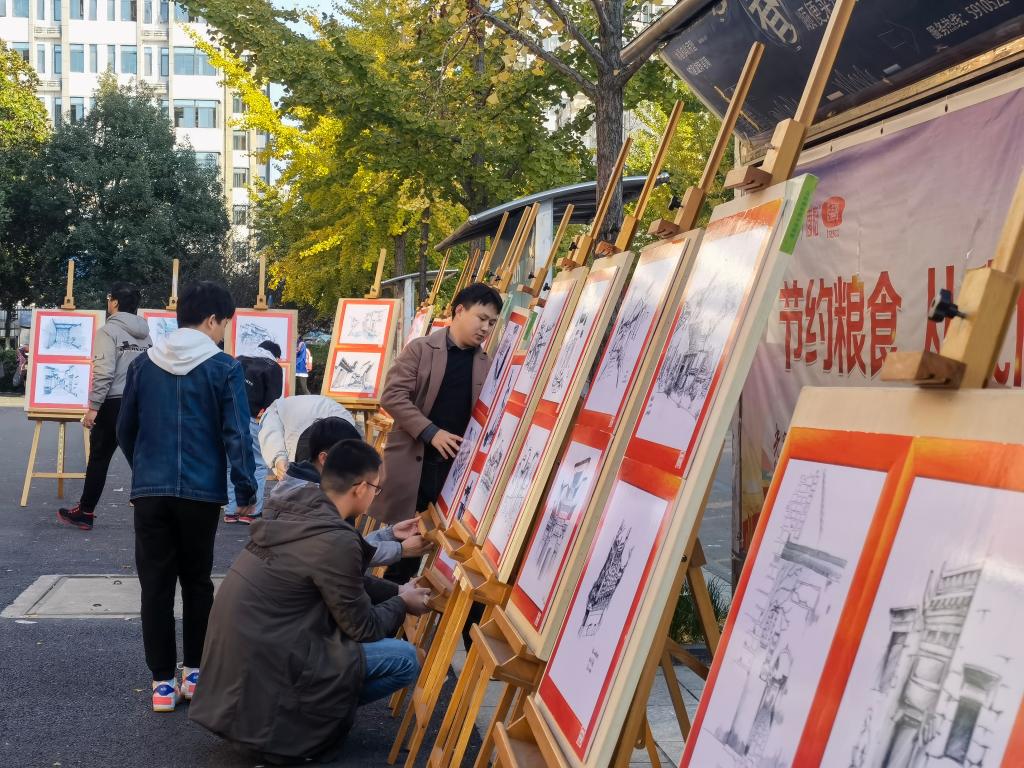 2020级城乡规划专业在二食堂门口举办“微风雅韵 画意宏村”皖南写生成果展。院党委书记贾冠忠、副院长曹卫东、专业指导老师黄秋实、金莹莹以及学院辅导员在班级同学的陪同下参观并指导了画展,学校各年级专业的学生前来观摩。