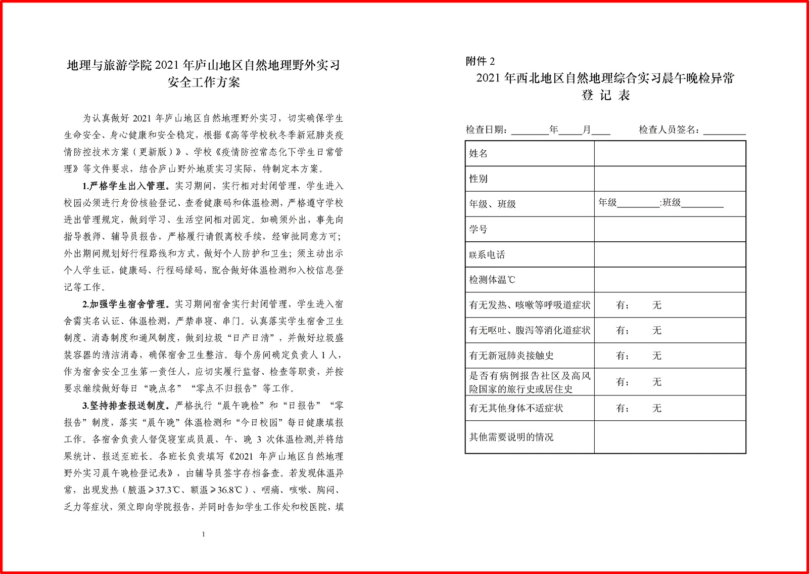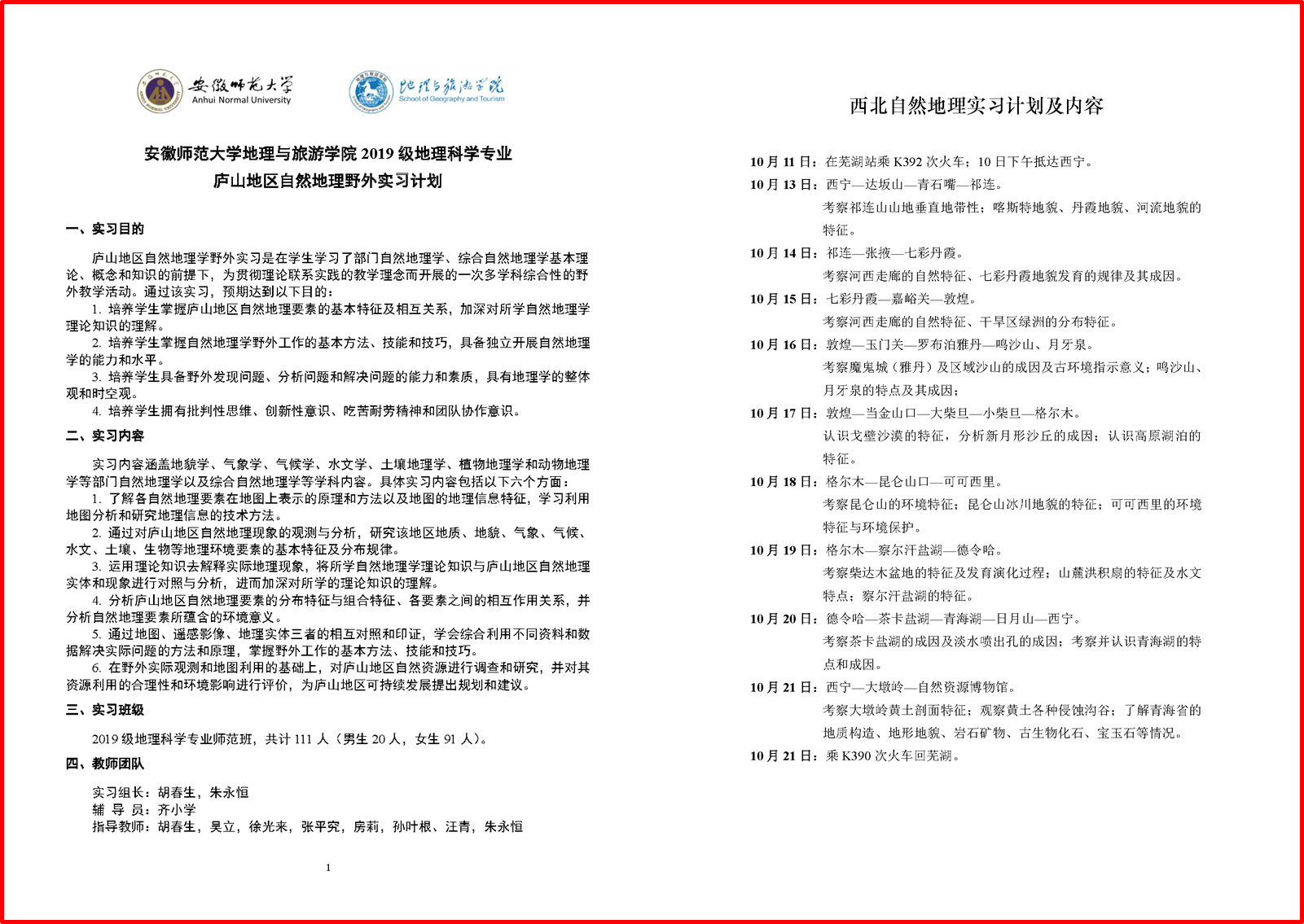 2019级地理科学类专业学生江西庐山、西北地区自然地理综合野外实习前,学院指定专业教师牵头指定实习方案和实习计划,提前对学生进行野外实习教育。