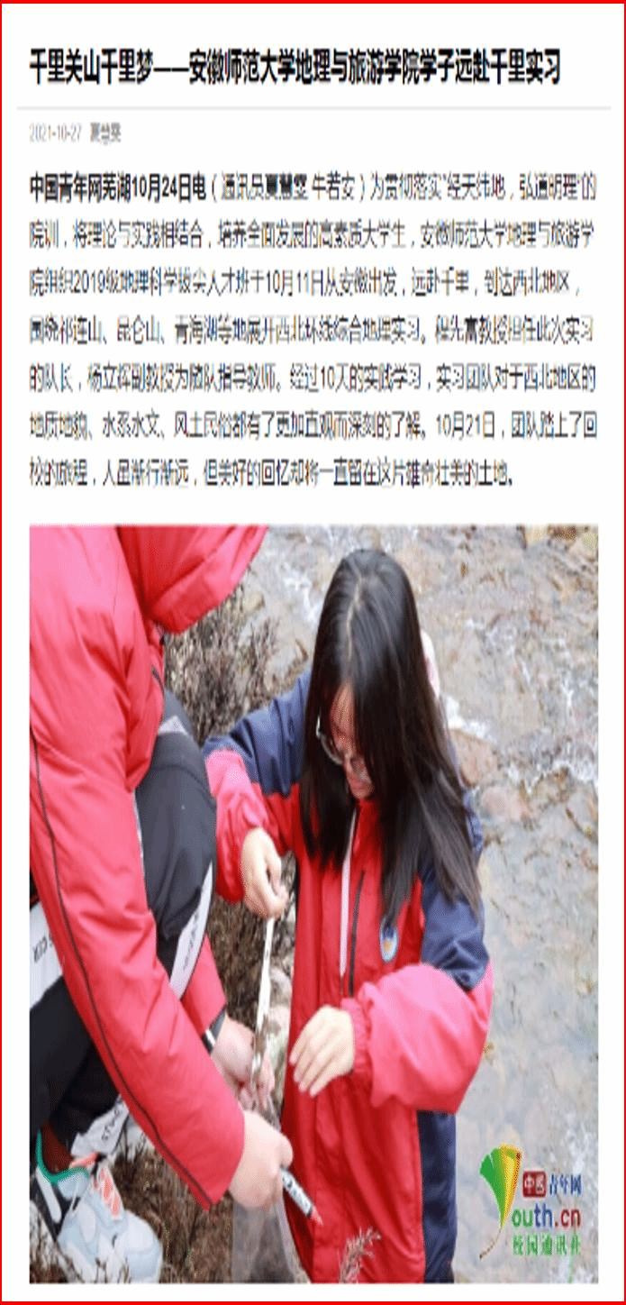 截至目前,西北自然地理综合实习也是目前省内高校首次、唯一组织的跨区域综合实习,具有开创性意义,受到了中国青年网等主流媒体的宣传报道。