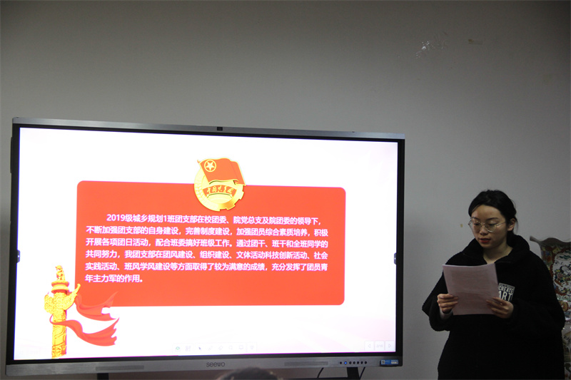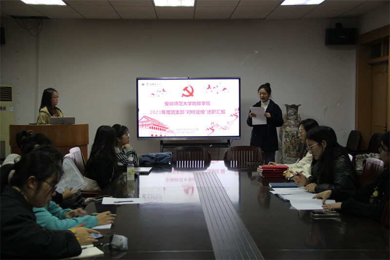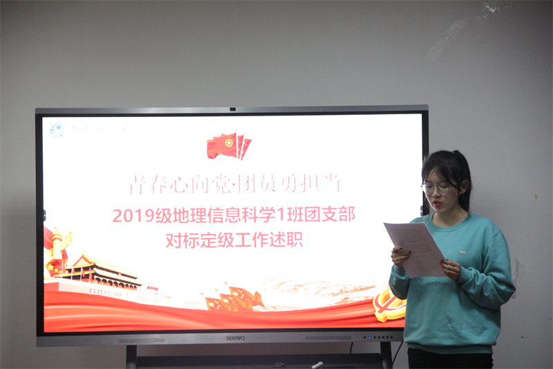 会议伊始,各团支部由团支书进行了“对标定级”述职汇报。2019级土地资源管理专业、2020级城乡规划专业和2019级地理科学师范2班采用视频形式进行汇报。其中,2020级土地资源管理专业团支书从“班级建设、团员建设、组织生活、制度落实、作用发挥”五个方面进行了汇报。2019级地理信息科学专业团支书就共青团员人数及构成等方面汇报了团员基本情况,展示了支部大会和团小组成员交流的照片。他阐述班级通过学习党的建设和党的十九届六中全会精神,开展了各类与时俱进的团日活动,体现了团小组建设的灵活性和多样性,还指出了工作中存在主要问题。2020级城乡规划专业团支部汇报中指出通过学习习近平总书记“七一”重要讲话精神,同学们紧跟时政热点,开展专题学习会,通过多种形式增加了同学们对党史学习教育的积极性和主动性,帮助同学们补充党史知识,团员管理有序,严格按程序发展团员,制度落实完善。此外,2018级各专业和2019级在外实习相关专业采取书面报告的形式进行汇报。