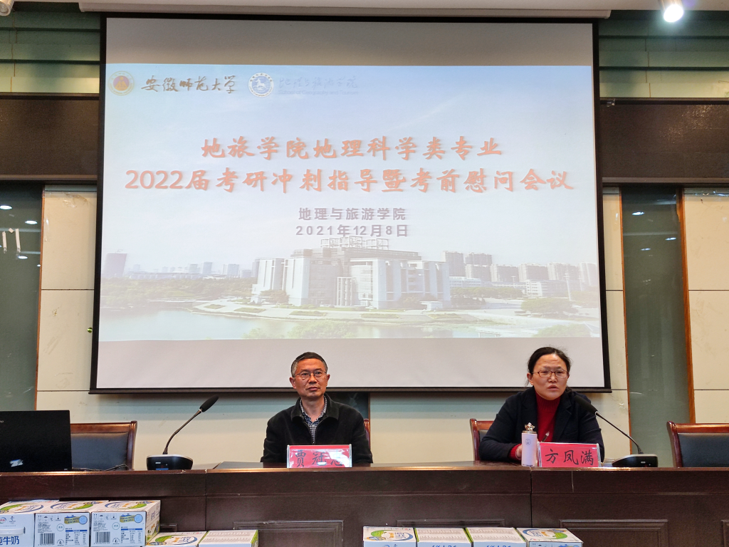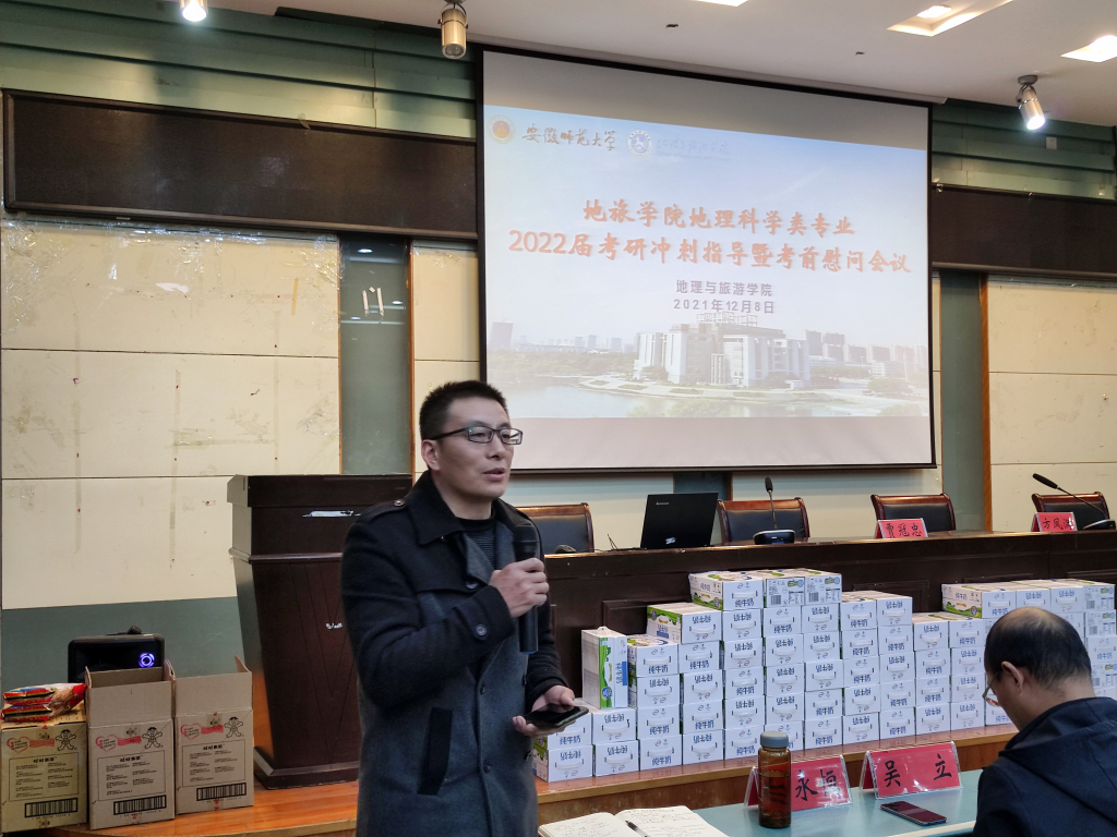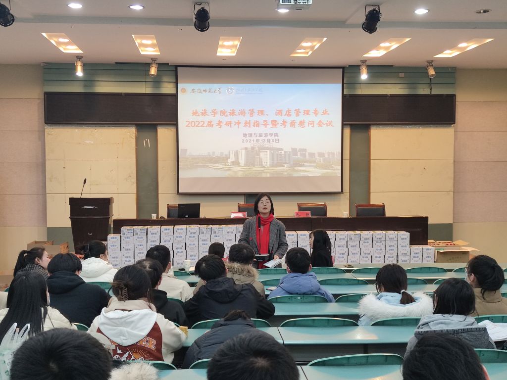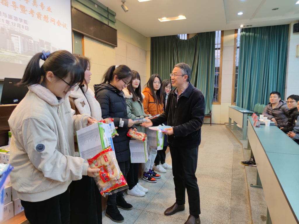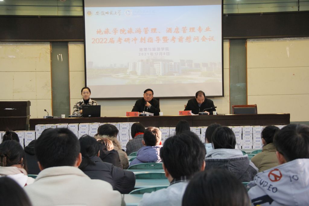 会议伊始,各专业辅导员介绍本专业本届考研学生基本情况。院领导出席各专业分会场慰问会,并作动员讲话。院党委书记贾冠忠出席地理科学专业分会场,他提醒考研学子要调整作息,稳住心态,保持身心健康,以积极良好的心态应对考试。院长苏勤出席旅游管理、酒店管理专业慰问会,他鼓励同学们调整心态,积极应考,注重身体;认真分析往年的试卷真题,了解学科热点问题、把握学科前沿,以“青春是用来奋斗的”激励考研学子坚持不懈,预祝同学们取得好成绩。