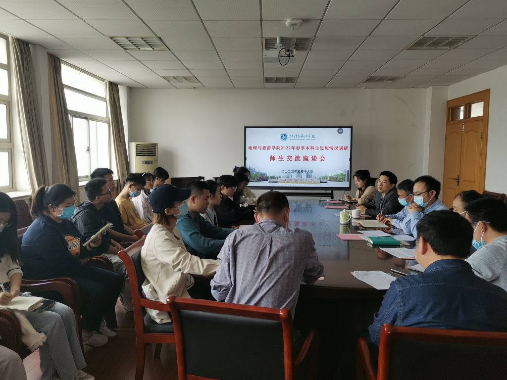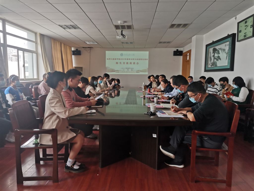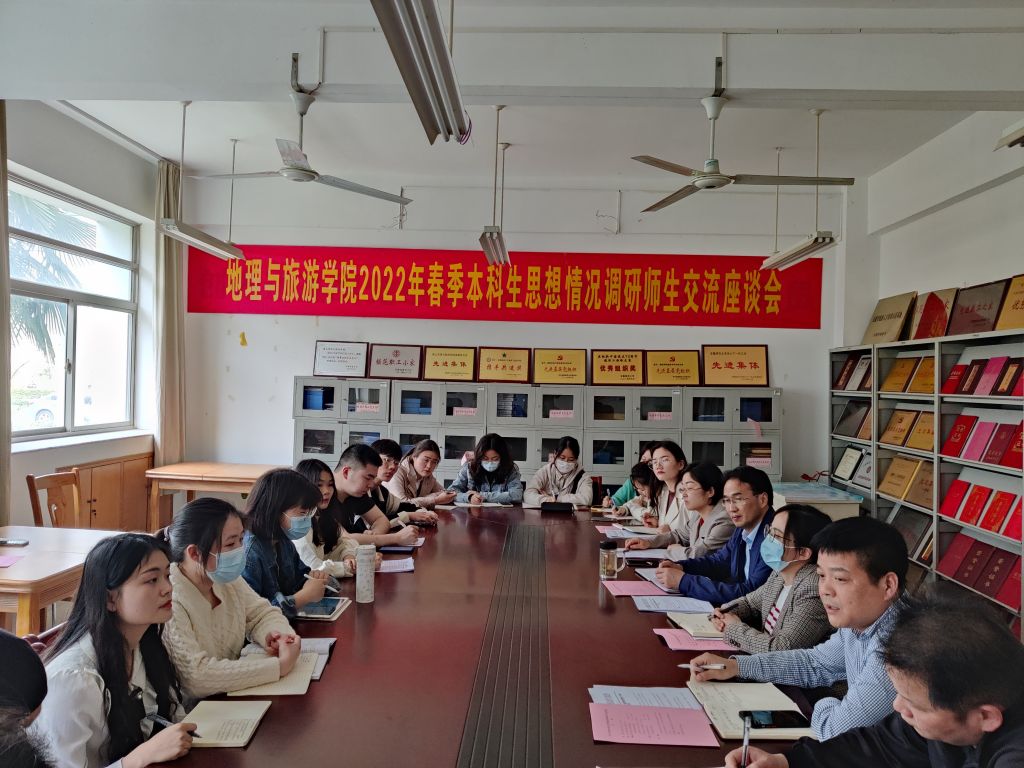 在学院行政楼举行2022年春季本科生思想情况调研师生交流座谈会,座谈会根据专业划分为地理城规、地信土地、旅游酒店三个分会场。足探比分