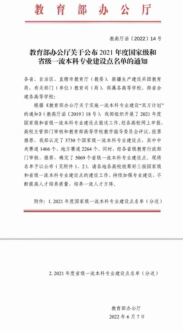 日前,《教育部办公厅关于公布2021年度国家级和省级一流本科专业建设点名单的通知》印发,球探足球比分app