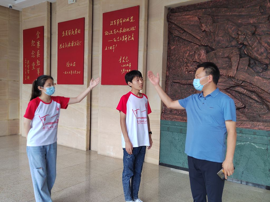 金寨县革命博物馆馆长倪军对于志愿者们的到来表示十分欢迎。在志愿者们训练的几天里,他亲自指导,从讲解、走位、仪态各个方面给予详细解答和培训,在志愿者们能够流畅地进行讲解时,他的脸上露出了欣慰的笑容。
