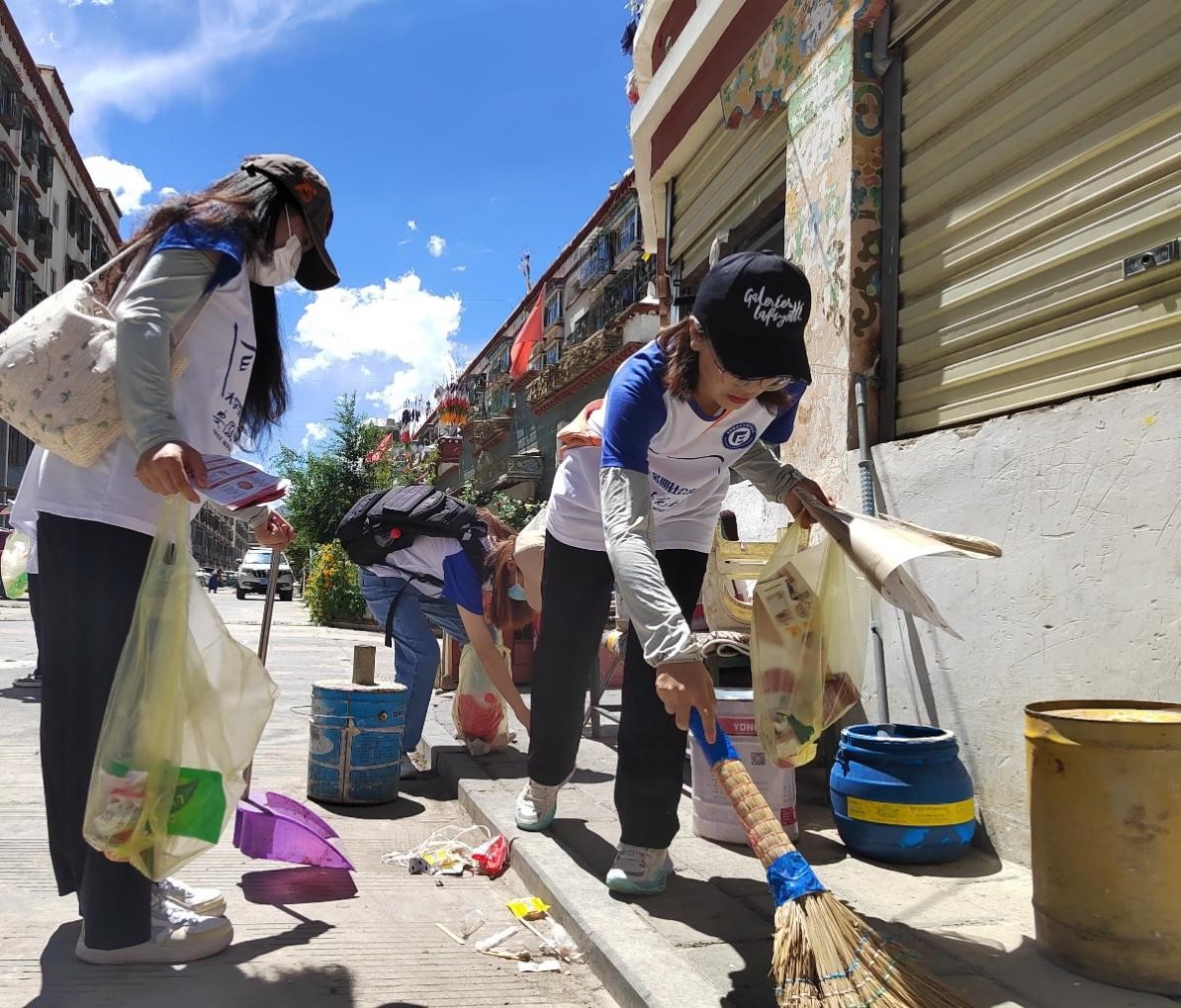 图为队员们在开展志愿服务 通讯员次旺加措 摄