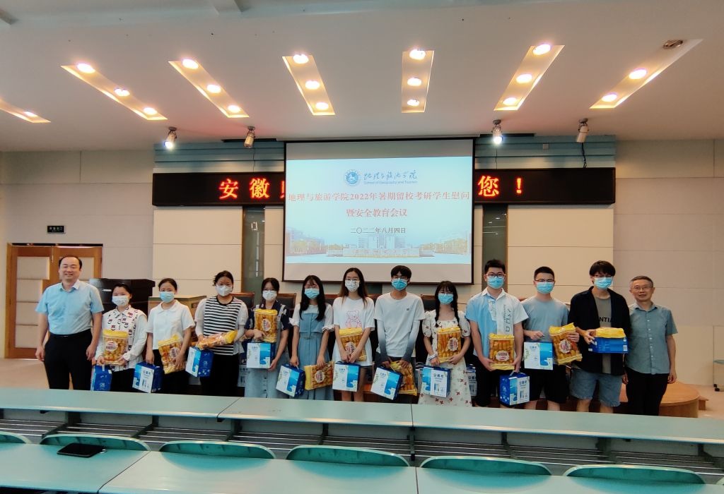 在实验楼101报告厅召开2022年暑假中期留校考研学生慰问暨安全教育会议。学院党委书记贾冠忠、院党委副书记乔静、2019级本科生辅导员以及全体暑期留校考研学生参会。