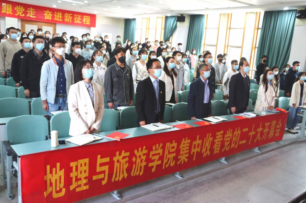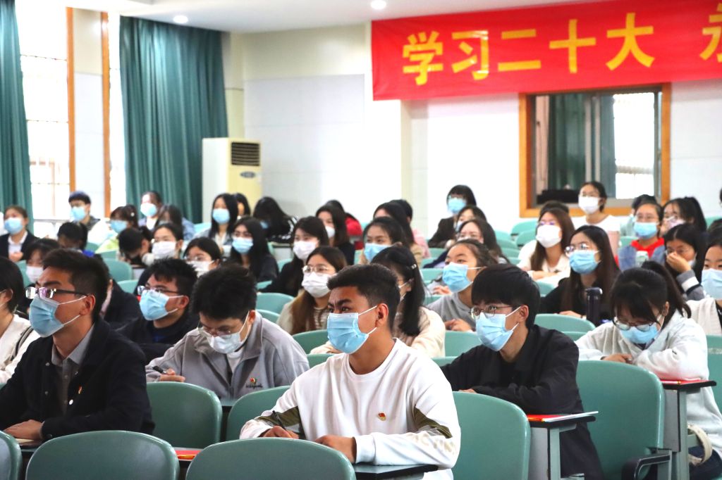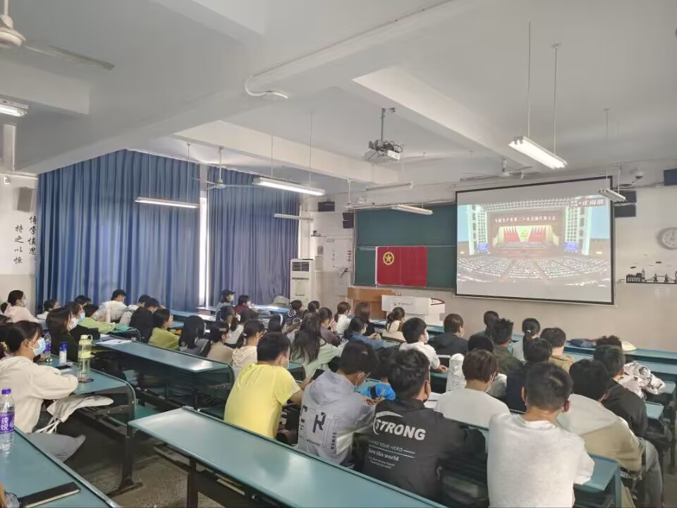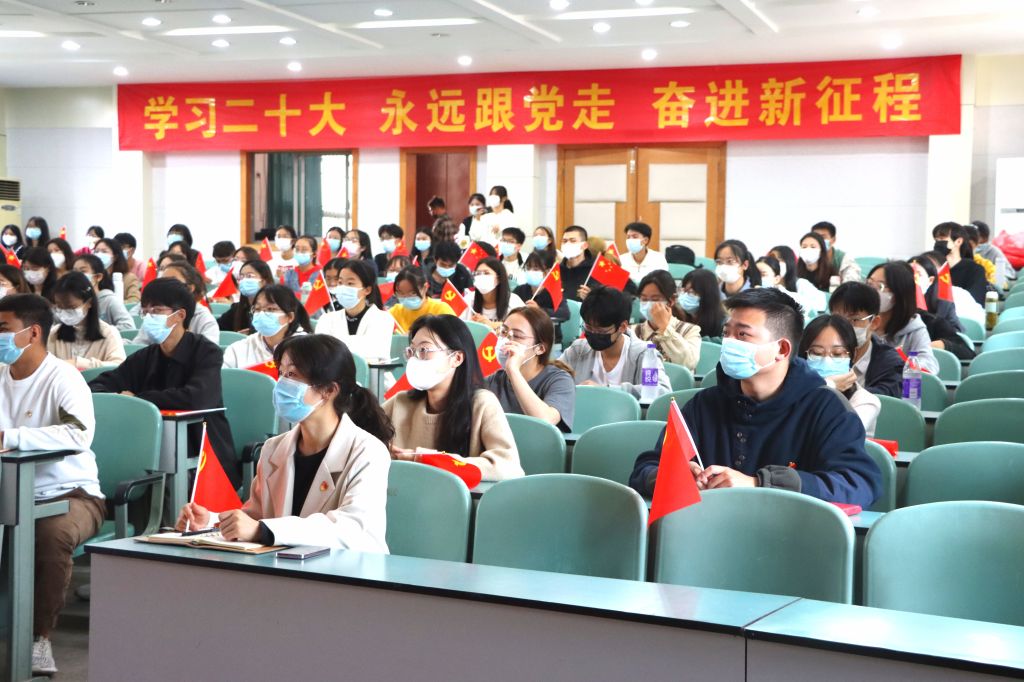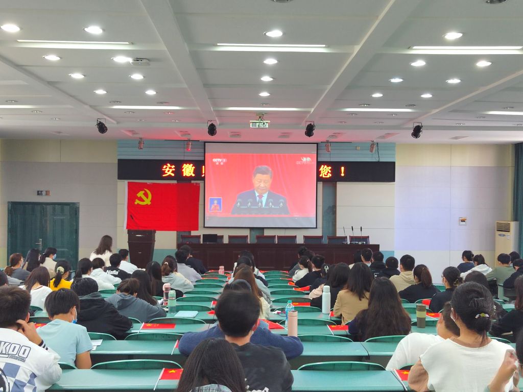 积极组织全院师生收听收看大会盛况,热烈庆祝党的二十大胜利召开。学院领导班子、学生党支部书记与学生党员、团员代表在101报告厅集中观看现场直播;教工党支部、各班级团支部分别组织开展线上线下收听收看活动。