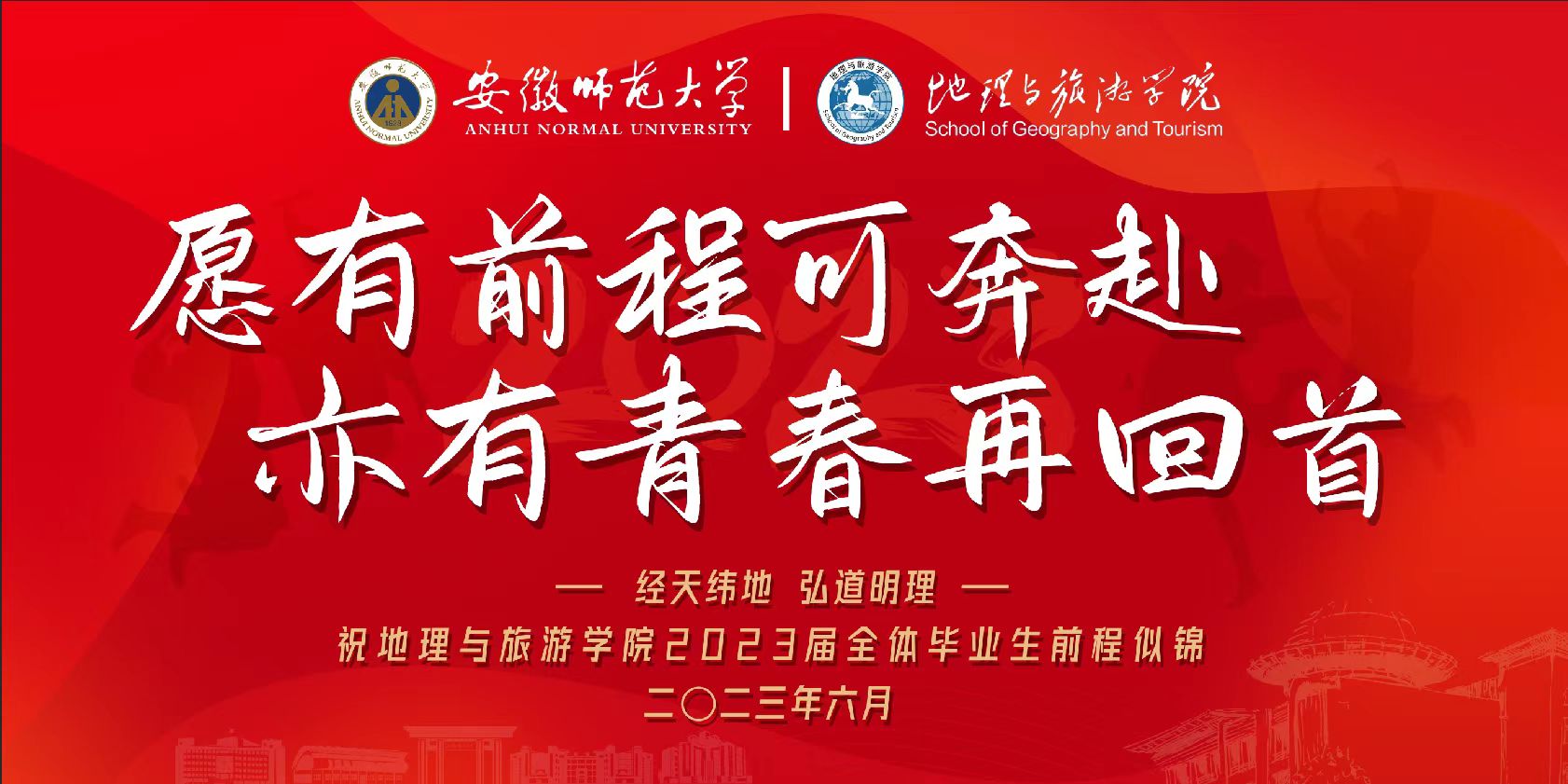 “经天纬地、弘道明理”的院训精神和“德才兼备、知行合一”的育人理念,希望2023届全体毕业生直面困难、乘风破浪,在新的征程中披荆斩棘、再创辉煌!