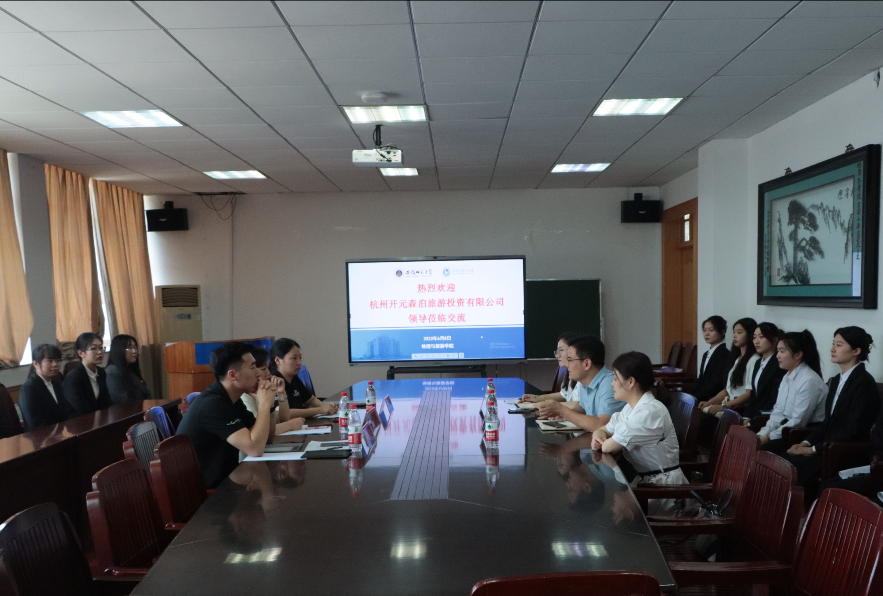 与杭州开元森泊旅游投资有限公司在学院行政楼三楼会议室共同启动首届“旅游职业经理人培育计划”暨开班仪式。杭州开元森泊度假酒店副总经理程琴妹、莫干山开元森泊度假酒店副总经理张洋、森泊管理公司招聘经理吴燕、足探比分