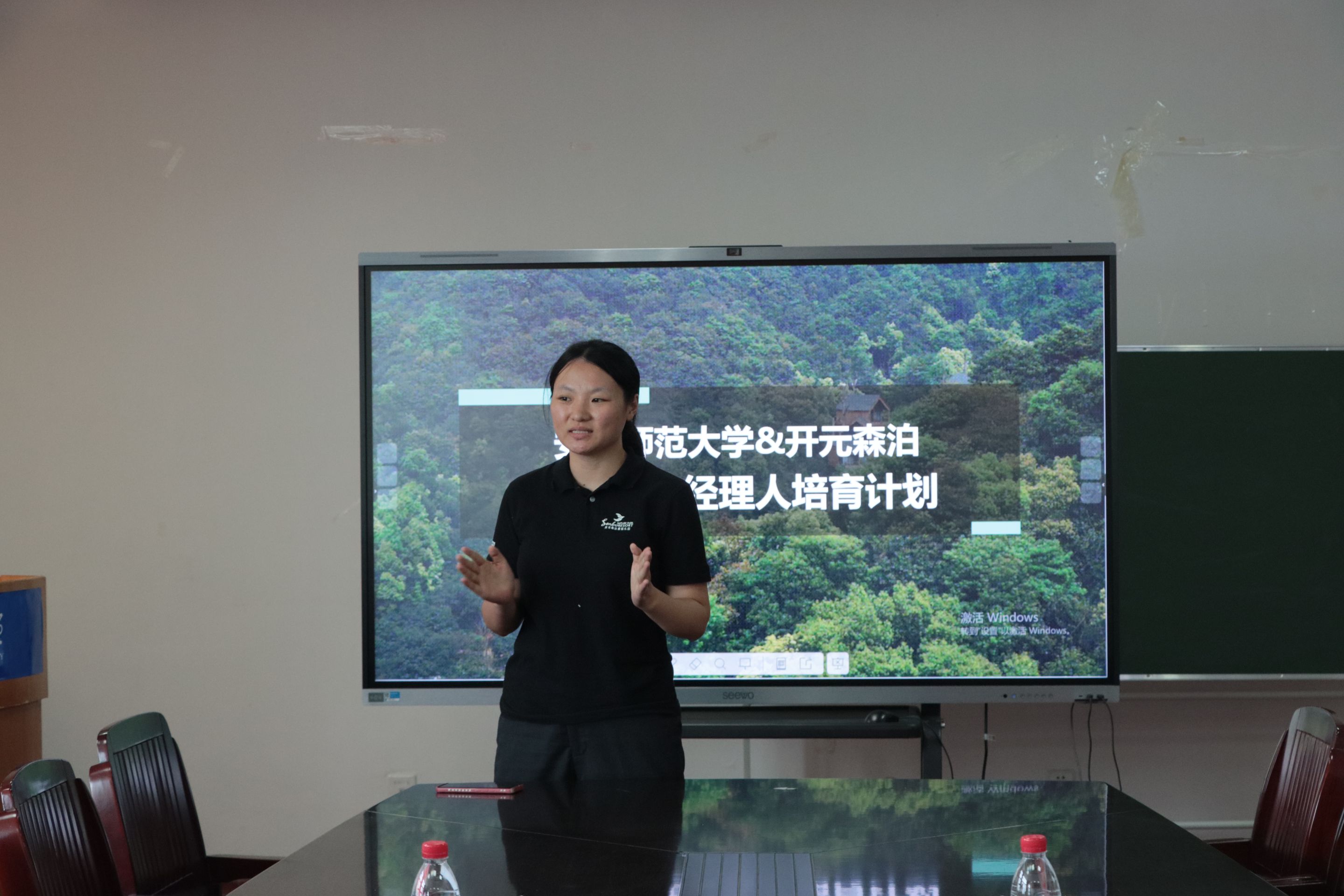 长期合作,有大批的优秀毕业生加入开元,并发展成为一批“新森代”力量,此次“旅游职业经理人培育计划”为行业人才培养和经济社会发展发挥更大的效能。吴燕介绍了开元森泊发展概况和“旅游职业经理人培育计划”人才培养方案。介绍过程中,学生代表积极提问,气氛轻松融洽。