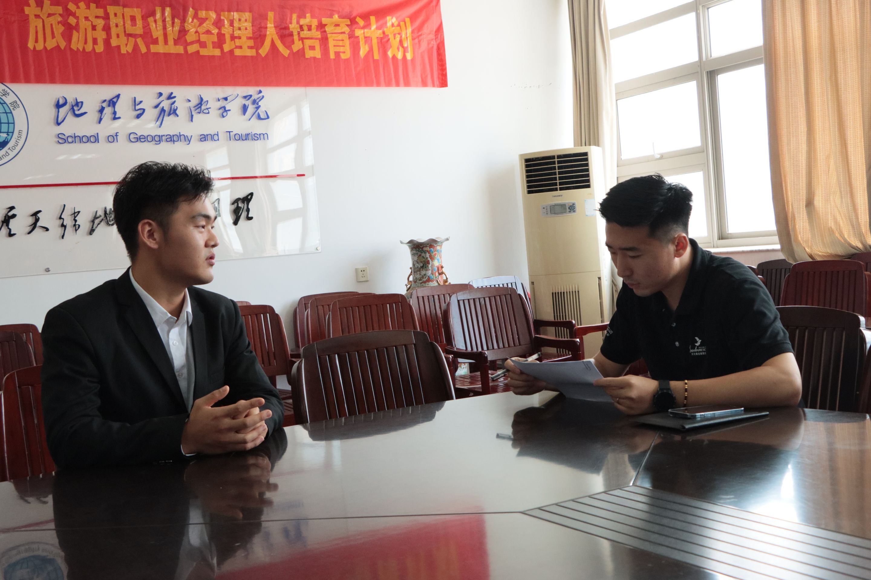 宣讲结束后,由开元酒店代表开展“旅游职业经理人培育计划”人才招募面试。面试分为三组,同时对28位同学开展自我介绍、职业理念、个人规划等方面的考察。经过层层筛选,最终10位学生参加首届“旅游职业经理人培育计划”。