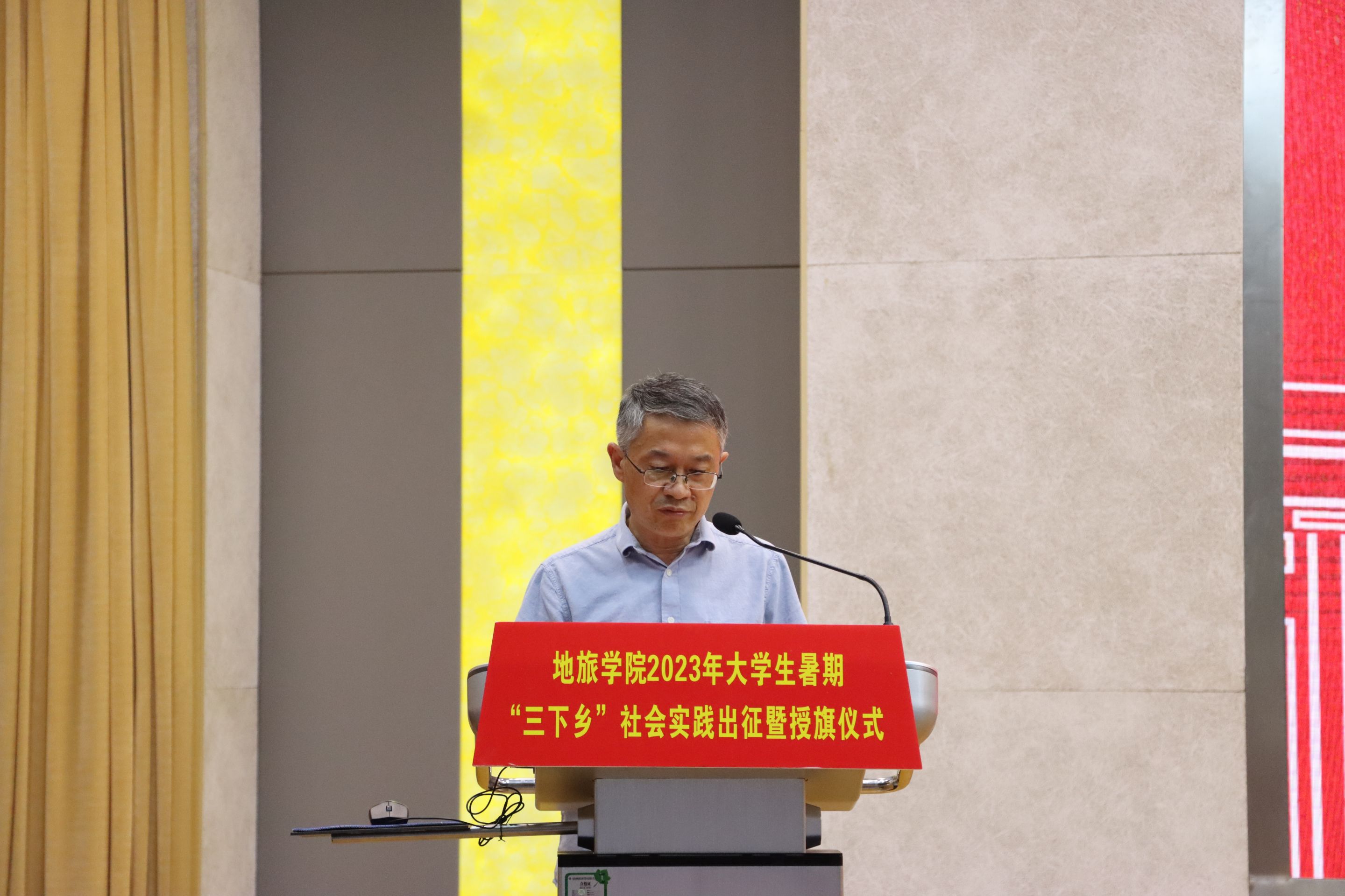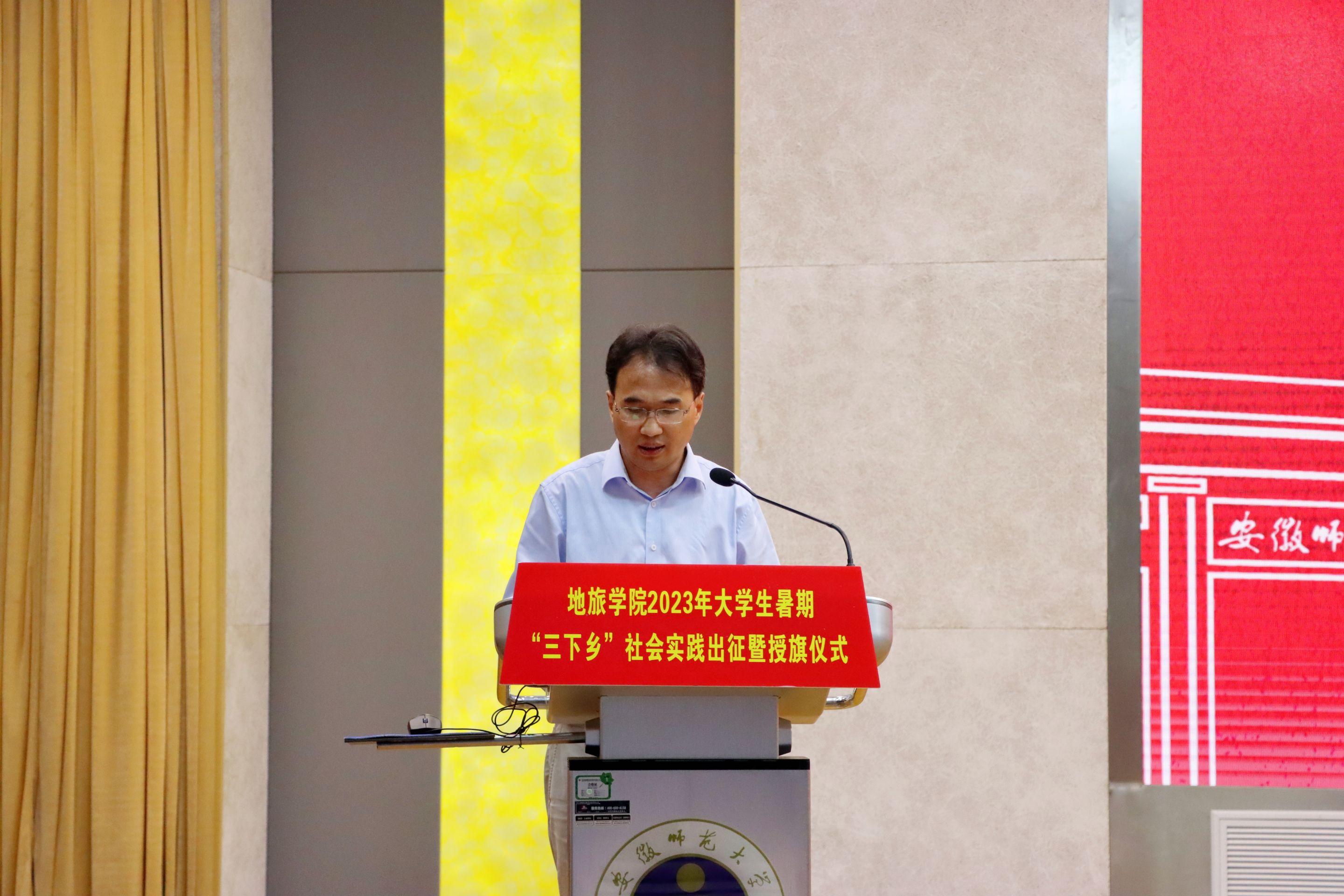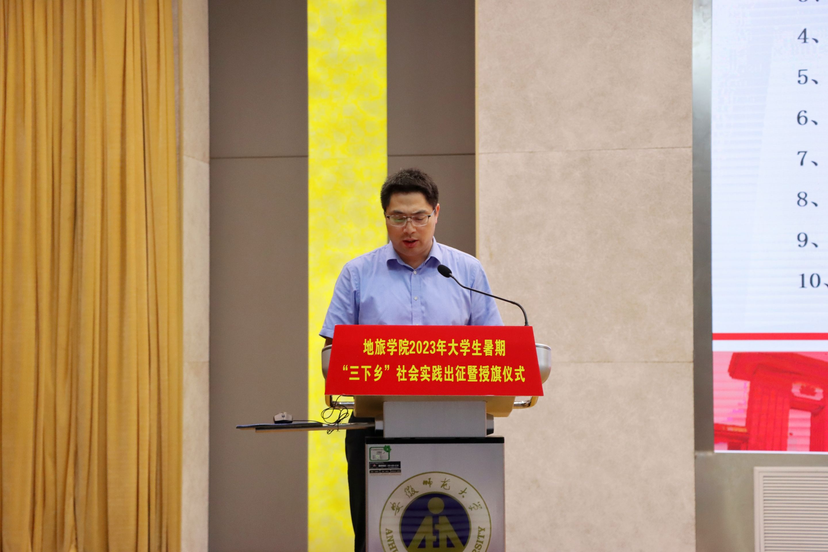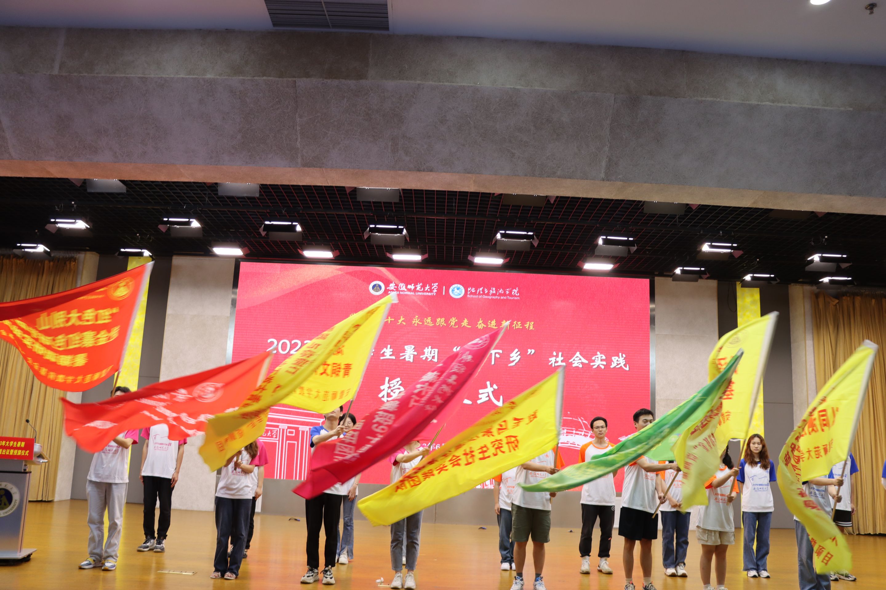 “行走的思政课堂”2023年大学生暑期“三下乡”社会实践出征授旗仪式暨安全宣传专题培训顺利举行。校团委书记廖仲明,思政指导教师安建增、李靖,足探比分
