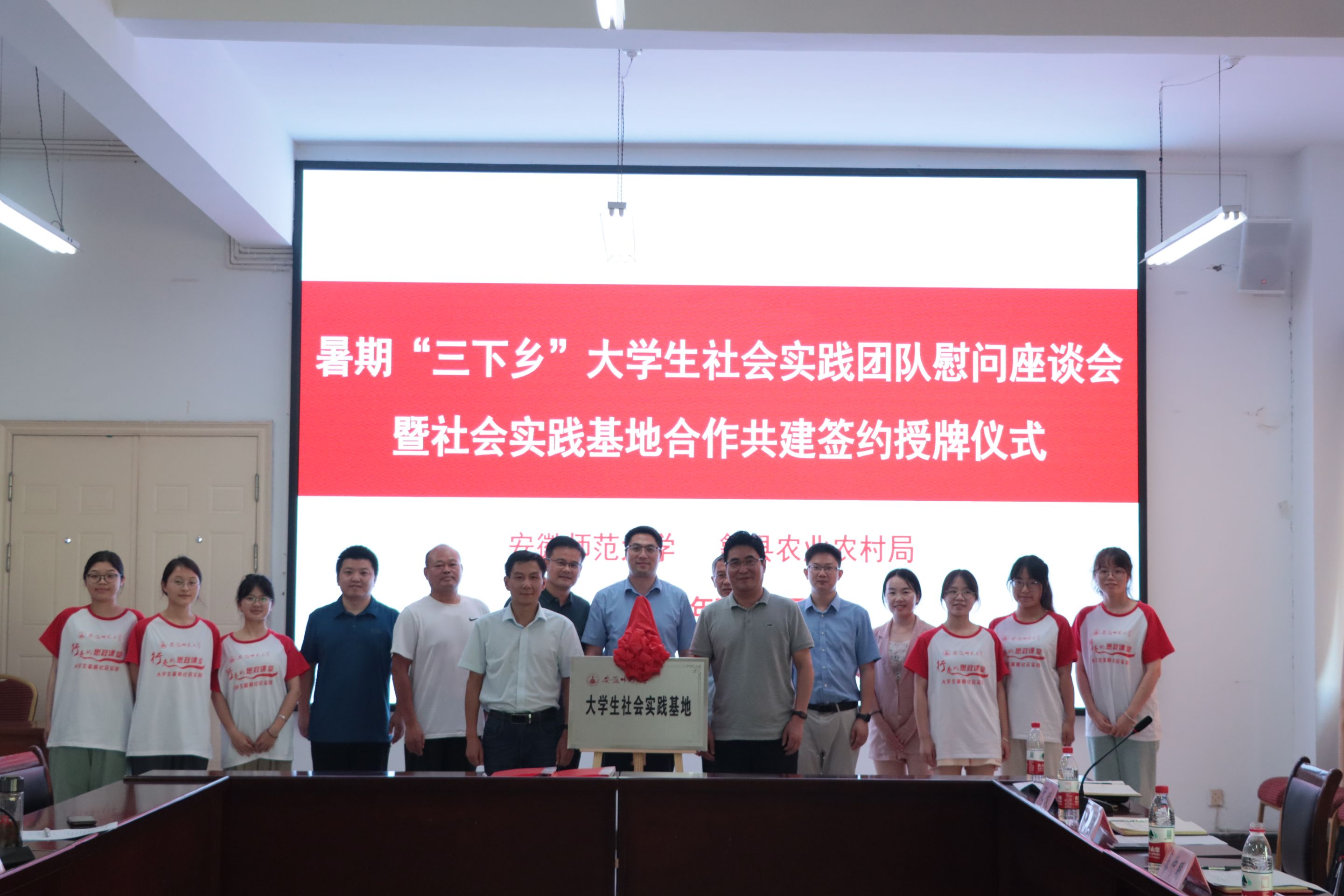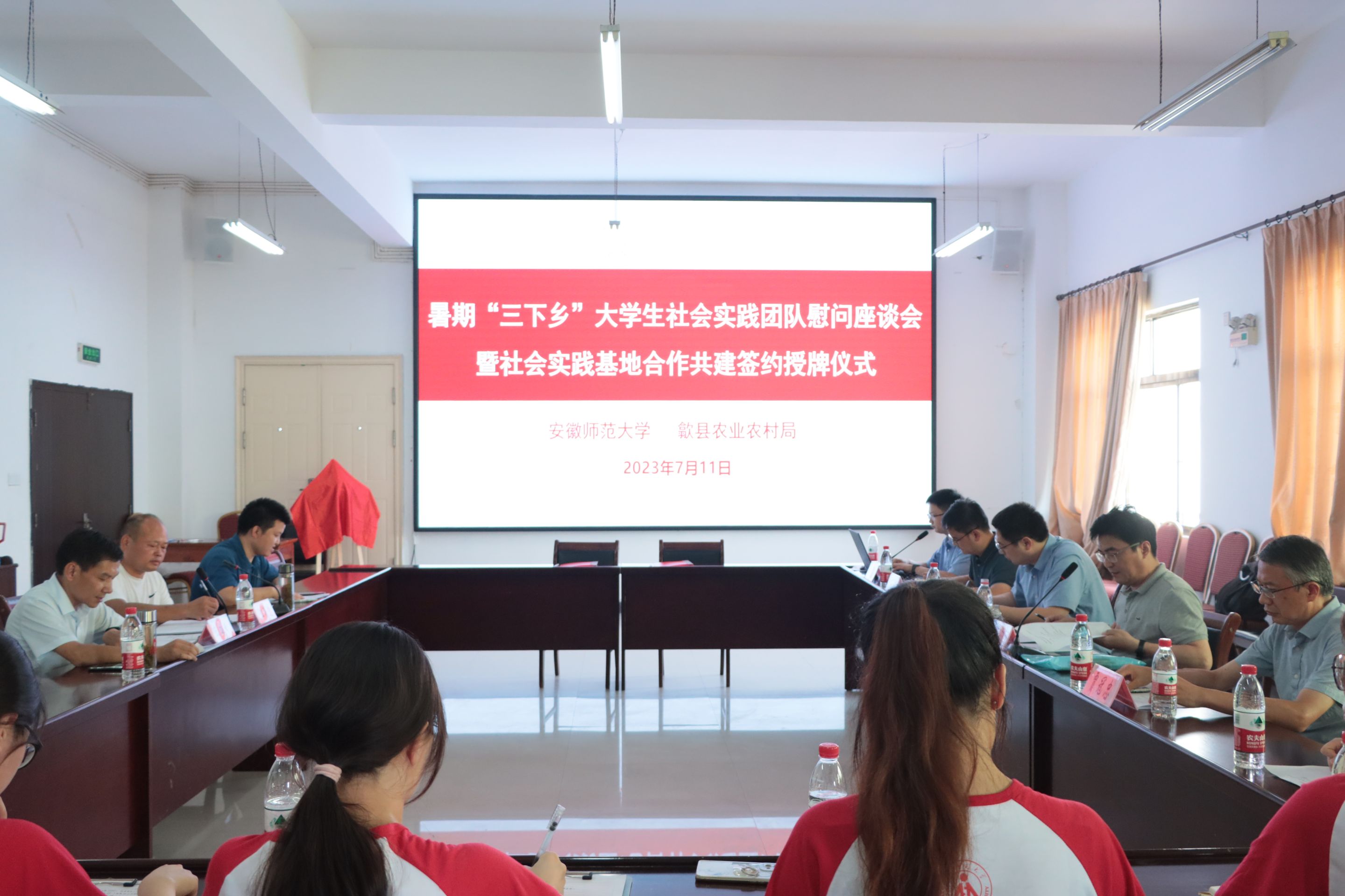 与歙县农业农村局签署了《大学生社会实践基地合作共建协议书》,高峰与王雄青共同为实践基地揭牌,安徽师范大学在歙县农业农村局大学生社会实践基地正式建立。