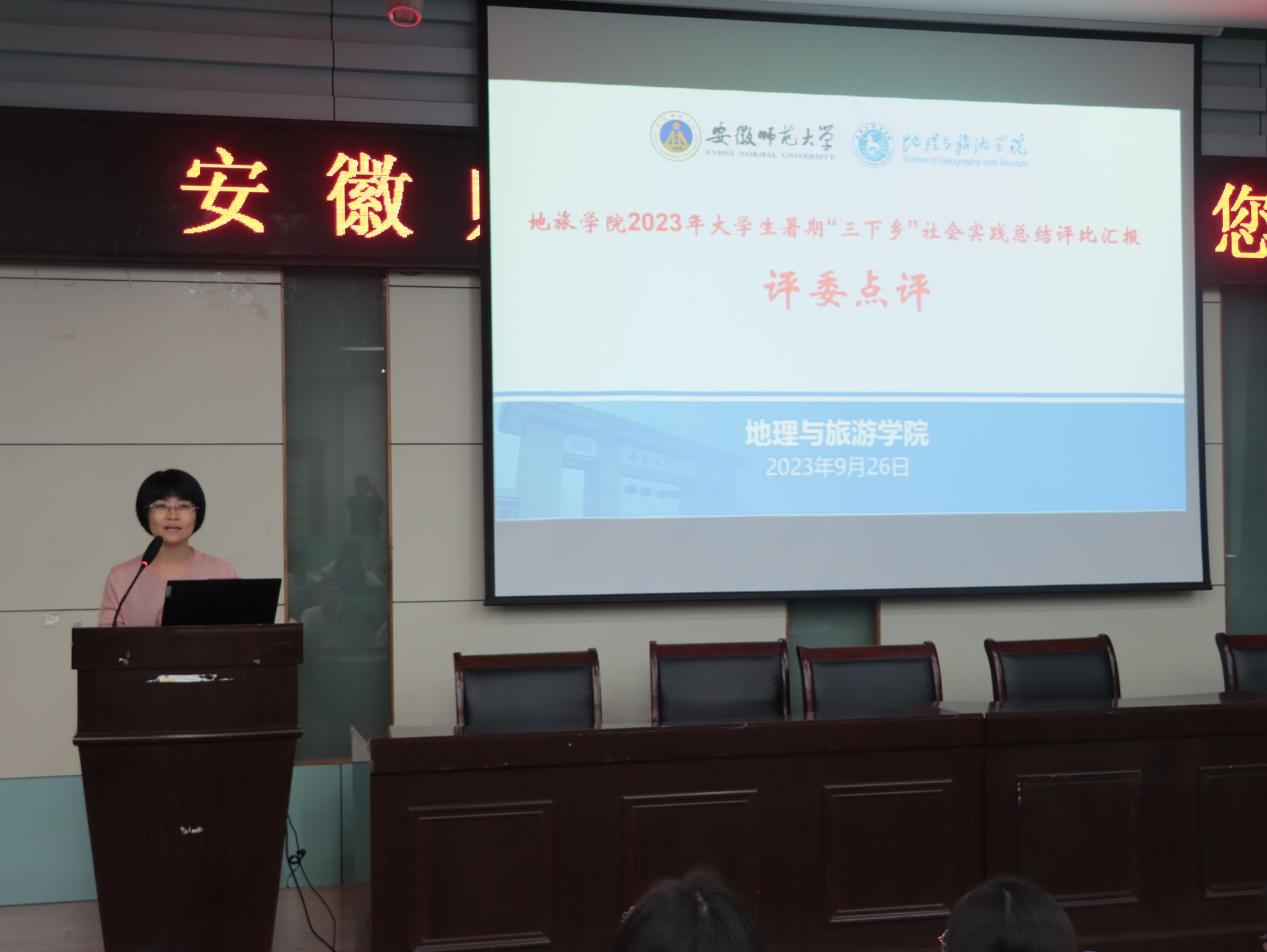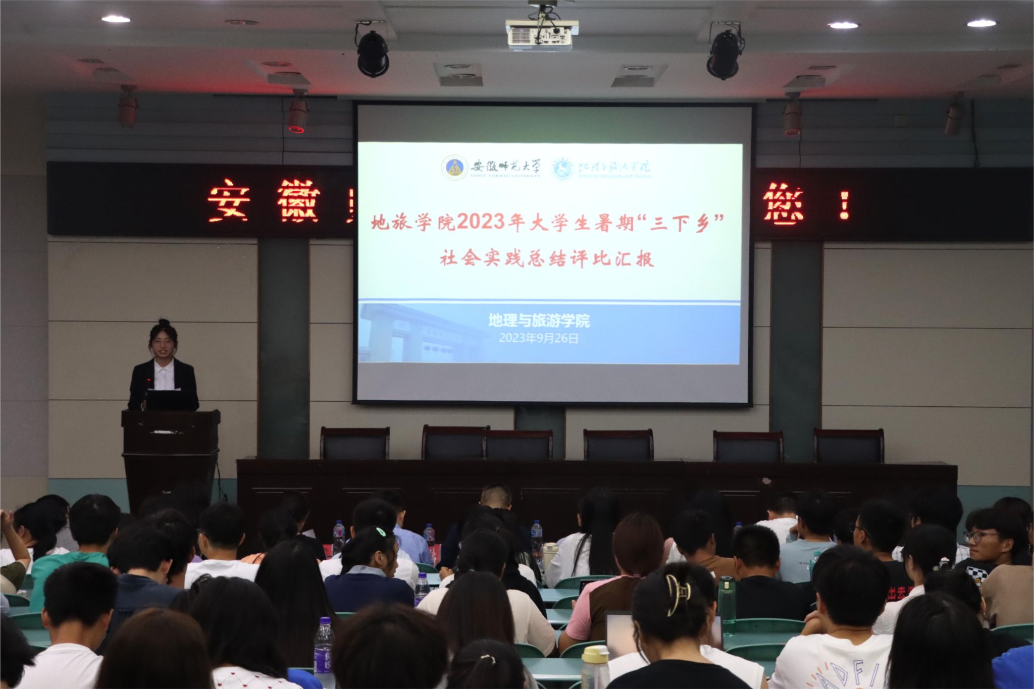 在院实验楼101教室举办2023年大学生暑假“三下乡”社会实践专题评比汇报会。学院党委副书记付勇,地理科学专业教师徐仪红、旅游管理专业教师阮陵、土地资源管理专业教师吴九兴、地理信息科学专业教师徐培培、城乡规划专业教师黄秋实,院团委书记韦银艳,院团委副书记吴文涵以及辅导员操晶晶、谢园担任评委,各团队负责人、各年级团支部代表参加会议。会议由徐瑾主持。