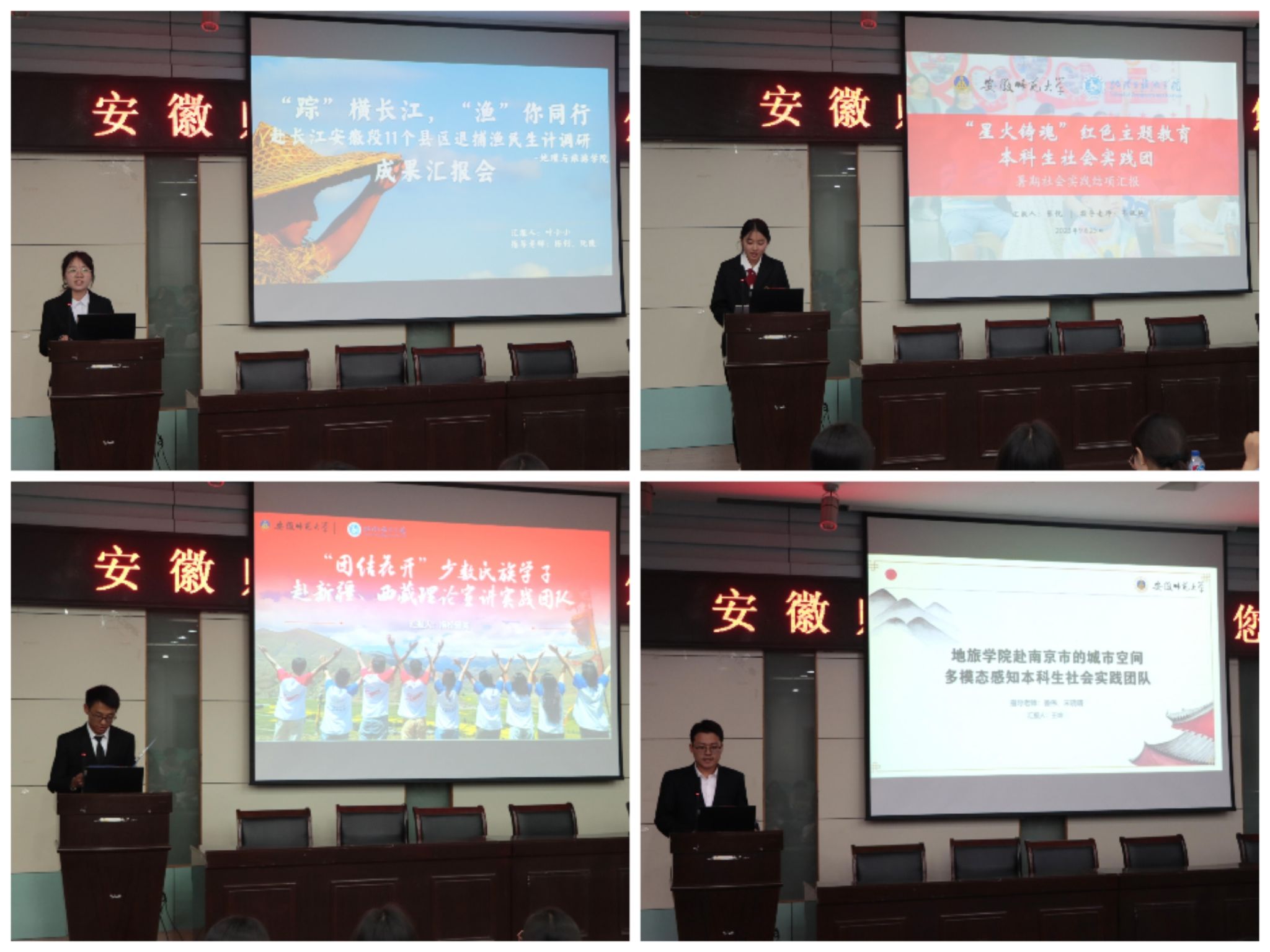 其中,“红色大别山、青春信仰路”赴皖西老革命区红色研学助力乡村振兴调研实践团队在陈祥云和吴文涵两位老师的带领下,将实地调研考察革命传统文化结果与文创产品设计联系起来,在赓续红色血脉的同时促进了文旅产业的进一步发展,助力乡村振兴。“团结花开”少数民族学子赴新疆、西藏理论宣讲团队深入贯彻习近平总书记 “以铸牢中华民族共同体意识为主线,坚定不移走中国特色解决民族问题的正确道路”的精神,通过“团结花开”少数民族学生关怀教育工程、“五微五计划”等一系列活动展现出了安徽师范大学深厚的民族情感关怀,寓教于行,鼓励师大学子做矢志不渝的爱国者,红心向党的奋斗者,新时代暖心的志愿者。“情系川皖、圆梦巴蜀”山区留守儿童支教团不忘初心,爱心接力,守约奔赴千里川乡,结合社会实践开设安全主题教育课程和爱国主义教育课程,让孩子们开阔视野,增加学习交流机会。每支团队都充分发挥才干,深入实地考察调研,让青春之花在祖国需要的地方绽放。