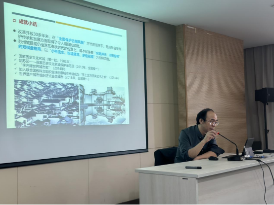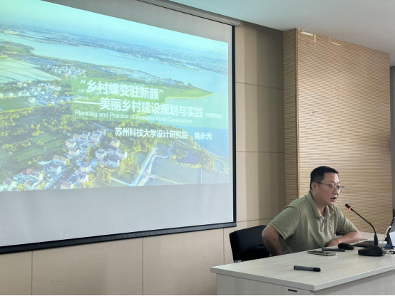 实习首日,学生们来到苏州科技大学设计研究院,由罗超副院长和姚永光院长分别解读了苏州历史文化名城保护规划和苏州特色田园乡村建设规划与实践,深入介绍了苏州市古城保护与更新相关政策、特色田园乡村内涵及古城街坊城市更新考察点。在专家的指导下,同学们对苏州城市规划和古城保护等方面有了更加深入的了解,从整体上了解了苏州的城市发展历程,为后续实地考察做好基础。