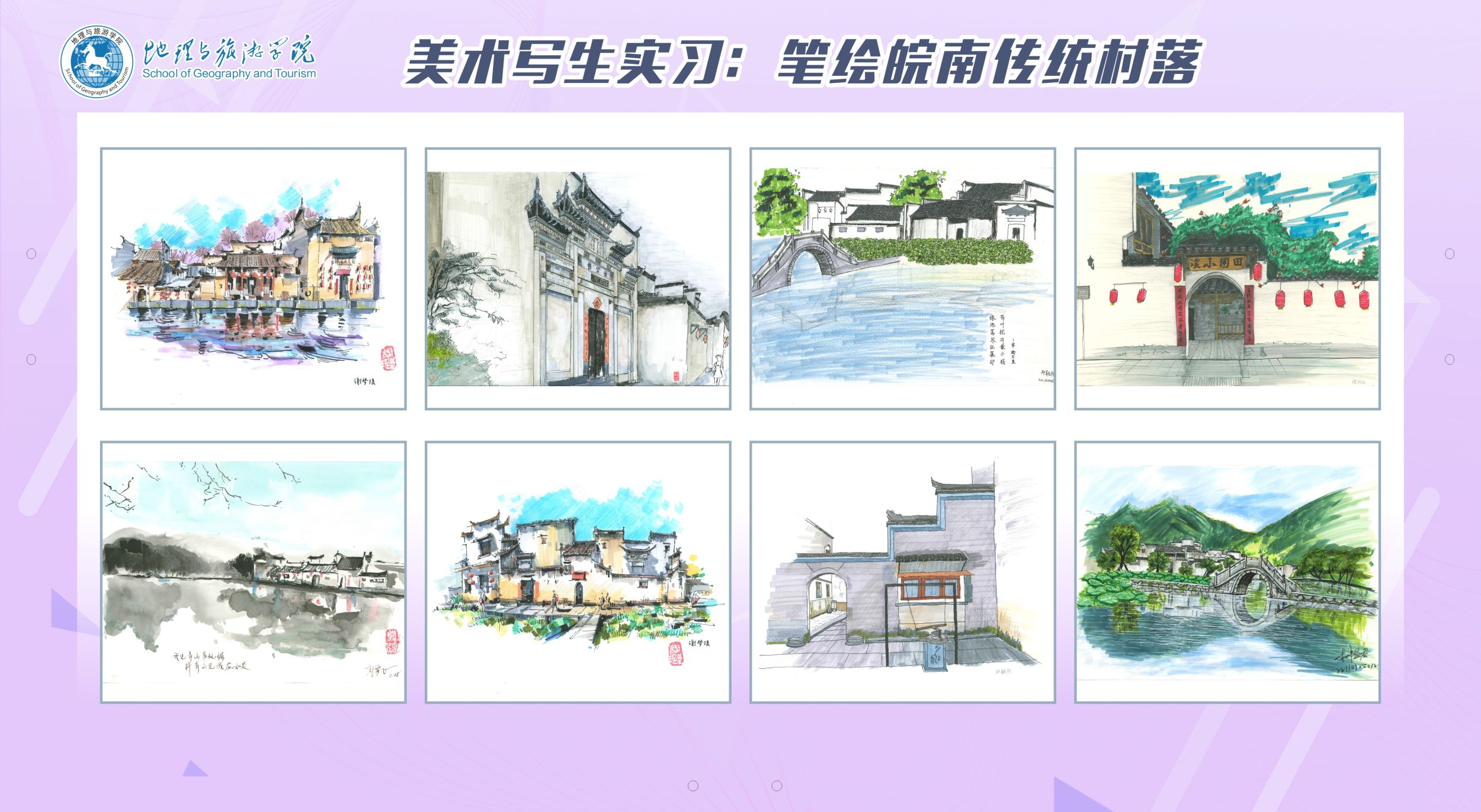 高度重视城乡规划专业学生手绘能力培养与专业技能提高,学院每年都会组织城规专业学生赴皖南写生实习。此次画展作品内容丰富、绘画方式多样,充分展示了城规专业实习成果,展现了城规学子风采,彰显了城规专业特色。未来,城规学子将继续用脚丈量城乡,用笔描绘天地,用心记录自然,夯实理论基础,提高实践能力,谱写地旅华章。