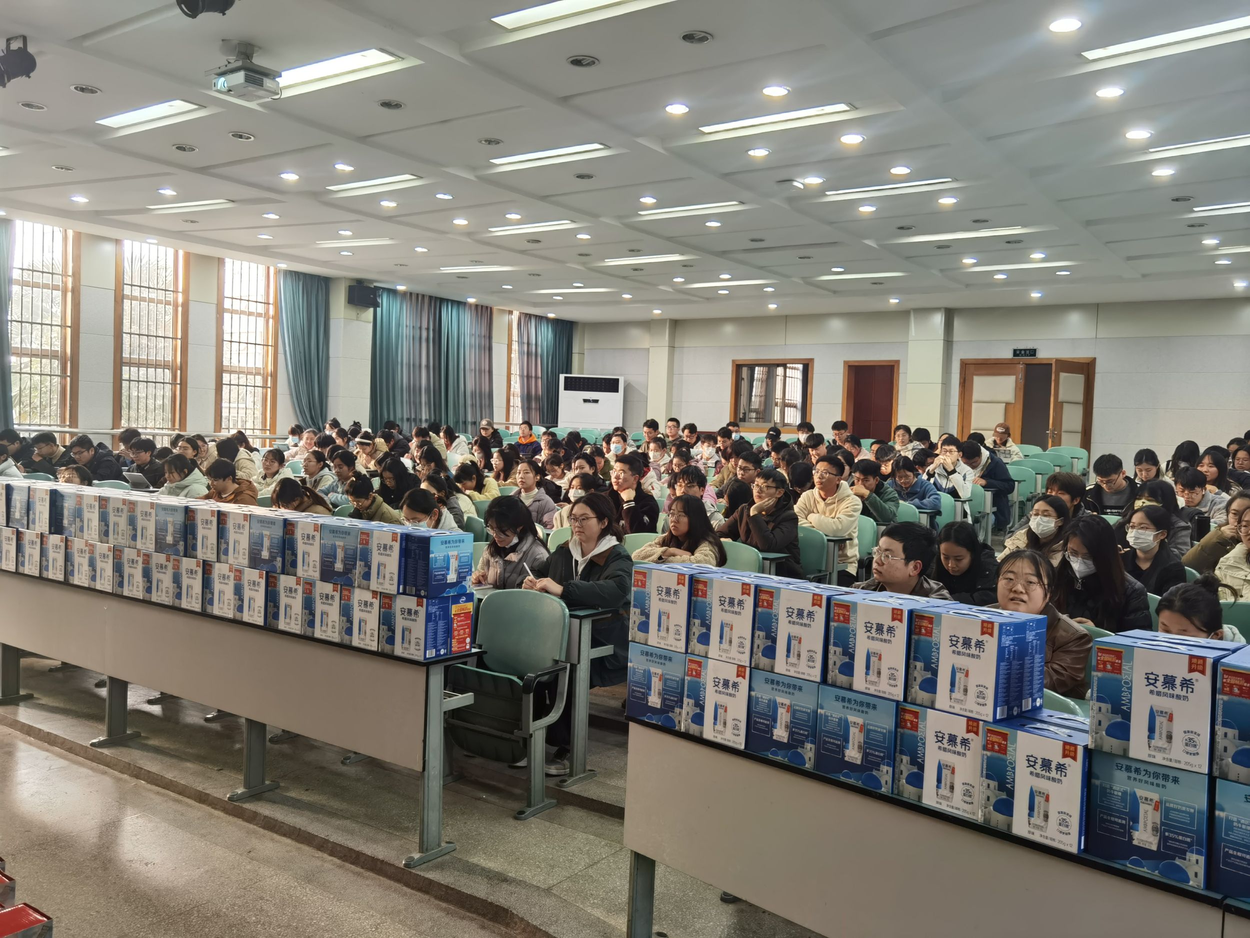 付勇在主持时着重强调了安全问题,他提醒同学们注意身体,劳逸结合,加强锻炼,平衡好膳食营养,保持身心愉悦。曹卫东从就业背景、考研形势、备考技巧、心态调整四个方面鼓励学生做最好的自己,为梦想而战。贾冠忠表示,考研是人生的重要阶段,希望每位同学都能坚持梦想,坚定信心,以最好的状态迎接即将到来的考试。同时,他叮嘱同学们备考时既要有科学合理的时间安排,也要有自信轻松的备考心态,以强大的心理素质应对考试。随后,与会领导老师为考研学子发放牛奶和饼干等慰问礼包,给同学们送上温暖与关怀。