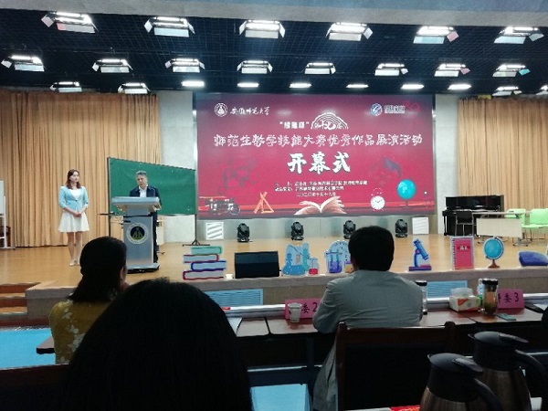 为进一步夯实师范生教学基本功,培养具备先进教学理念和扎实教学技能的优秀教师后辈力量,营造以赛促练、以练促学、以学促能的良好氛围,展示师范专业办学成果,安徽师范大学于2020年10月18日上午在花津校区理科实训中心一楼报告厅举行第十七届师范生教学技能大赛优秀作品展演活动。主要校领导、各师范学院教学院长、师范专业负责人、部分专业教师参加活动,2019级、2020级部分学生作为观众现场观看。展演活动全程平台同步直播。
