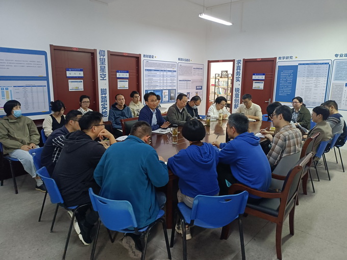 在实验楼二楼地理教研室召开地理科学专业内涵建设研讨会。院长方凤满、教学院长杨兴柱及地理教研室全体教师参加研讨会,会议由地理教研室主任朱永恒主持。