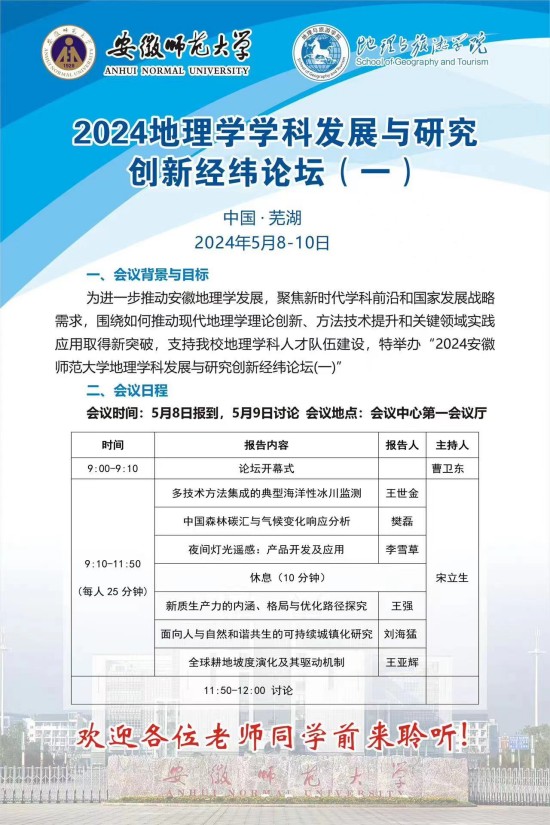 【学术预告】2024地理学学科发展与研究创新经纬论坛