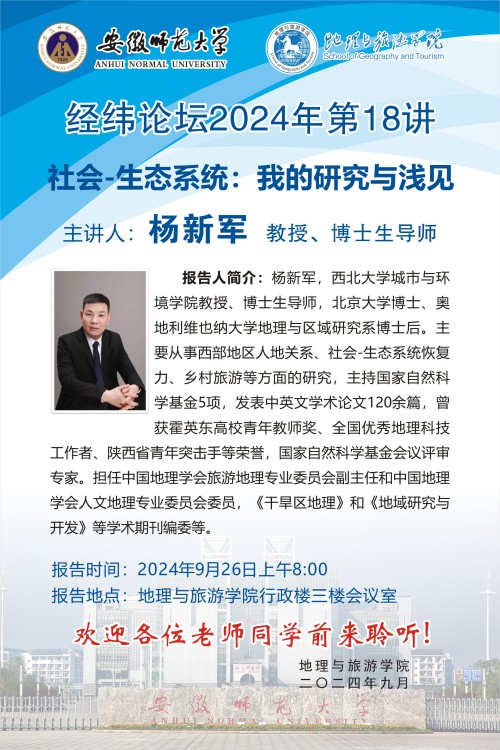 【学术预告】经纬论坛第50讲:社会-生态系统:我的研究与浅见
