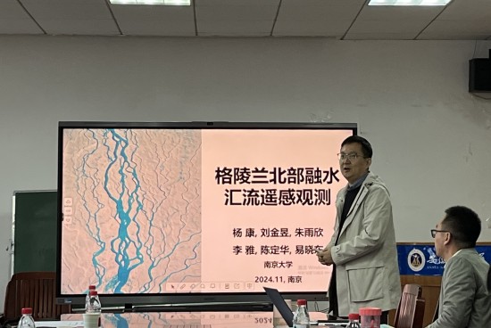 的概况,并向出席本次论坛的各位专家学者表示热烈欢迎。在随后的专家报告环节,宋春桥研究员做了主题为《全国与全球尺度水库遥感制图与知识发现》的报告,系统介绍了他们在全国与全球水库编目与调蓄能力估算方面的研究成果。杨康教授做了主题为《格陵兰北部融水汇流遥感观测》的报告,系统介绍了他们在格陵兰冰川表面河流遥感监测方面的研究工作。戴强教授做了主题为《基于遥感土壤水分信息的降雨型滑坡时空预测》的报告,介绍了他们在降雨型滑坡时空预测方面所做的创新性研究成果。柯灵红副教授做了主题为《卫星揭示全球河流变化热点区域》的报告,介绍了他们在全球尺度长时序河道形态及河流水域范围变化方面的创新性研究成果。专家们的精彩报告赢得了师生们的热烈掌声,学院师生们借此机会与几位专家进行了深入探讨,现场气氛活跃。此次论坛为我校遥感学科的未来发展提供了重要的借鉴和指导。