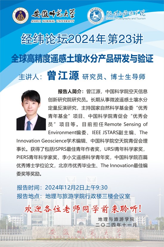 【学术预告】经纬论坛第55讲:全球高精度遥感土壤水分产品研发与验证