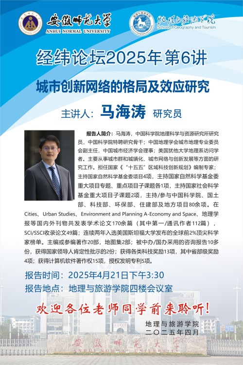 【学术预告】经纬论坛第71讲:知识与创新的空间模式和效应