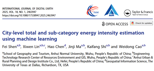 麻金继教授研究团队,联合德克萨斯大学达拉斯分校等科研单位在能源强度研究中取得新进展,相关研究成果“City-level total and sub-category energy intensity estimation using machine learning”发表于测绘遥感领域权威期刊《International Journal of Digital Earth》(中科院一区,IF= 3.7,期刊分类A5)。沈非副教授为第一作者,麻金继教授为通讯作者,安徽师范大学为第一完成单位。研究在国家自然科学基金项目(42271372)资助下完成。