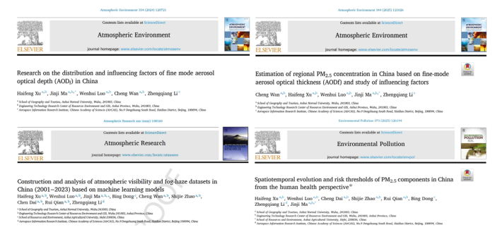 该系列研究成果由2023级博士生许海锋、2022级硕士生万城分别作为论文的第一作者,麻金继教授为通讯作者,安徽师范大学为第一署名单位。研究在国家自然科学基金项目(42271372)资助下完成。研究数据覆盖2000-2022年中国17个典型城市群,整合了AERONET地基观测、MODIS卫星遥感、气象站点及人口健康等多源异构数据,总样本量达340万余条。研究成果为差异化区域减排政策制定、重点污染物靶向管控及公共卫生风险预警提供了重要的科学依据与技术支撑。