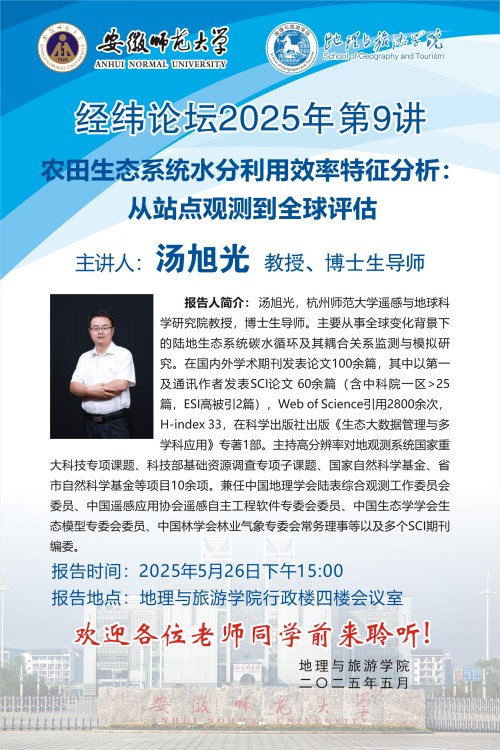 【学术预告】经纬论坛第75讲:农田生态系统水分利用效率特征分析:从站点观测到全球评估