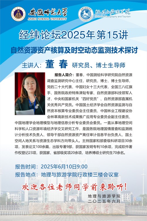 【学术预告】经纬论坛第81讲: 自然资源资产核算及时空动态监测技术探讨