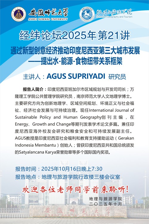 【学术预告】经纬论坛第87讲: 通过新型创意经济推动印度尼西亚第三大城市发展——提出水-能源-食物纽带关系框架