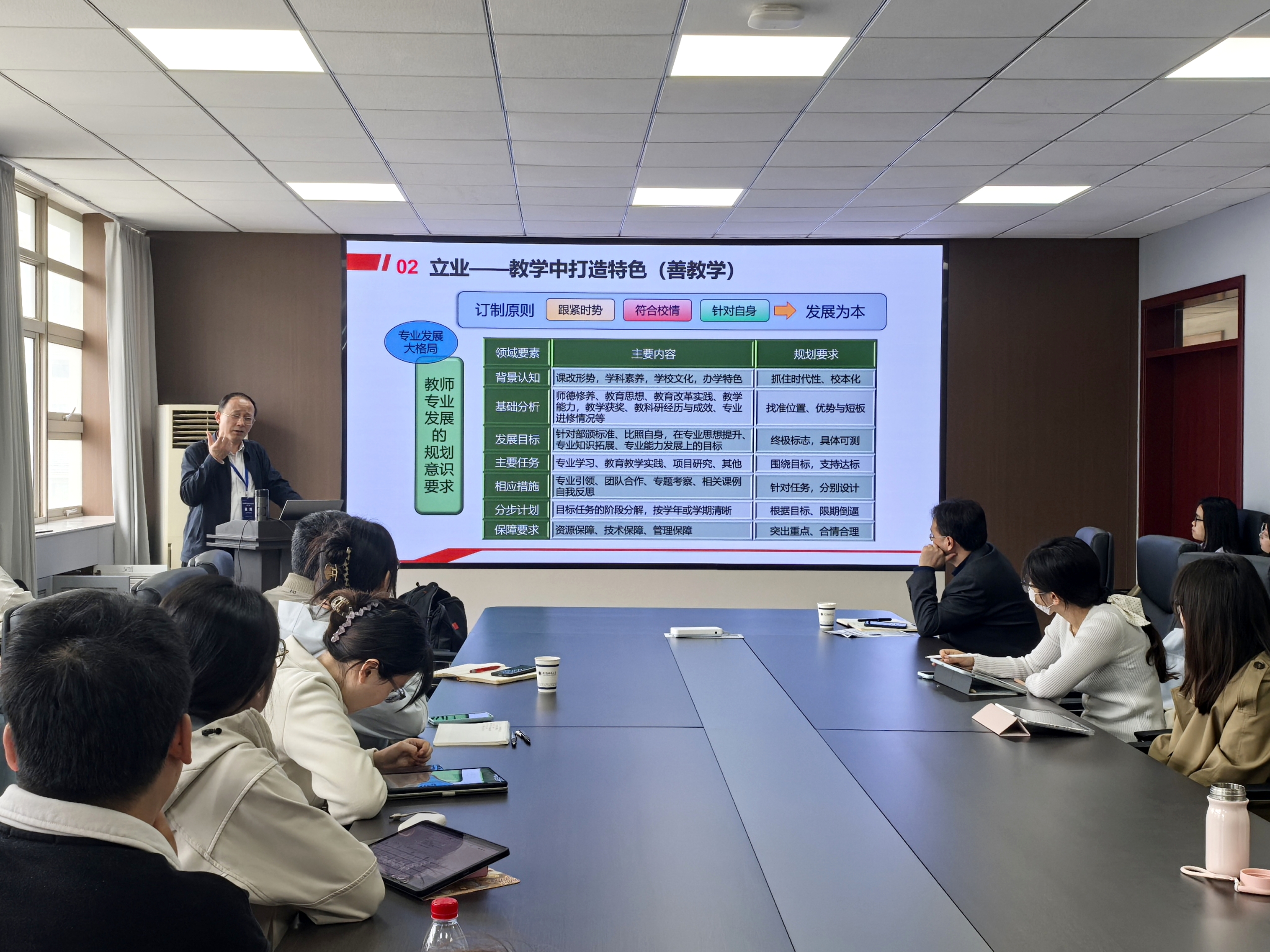 报告中,吴照老师以“立人、立业、立言”为核心,系统阐释地理教师专业成长路径:立人需以读书筑牢底色,构建三级课程体系,兼顾学生共性成长与个性发展;立业要以教学打磨特色,通过多维度历练形成个人教学风格,成长为有影响力的成熟型教师;立言应聚焦教学真问题,坚守科研准则,以真研究赋能教学创新。