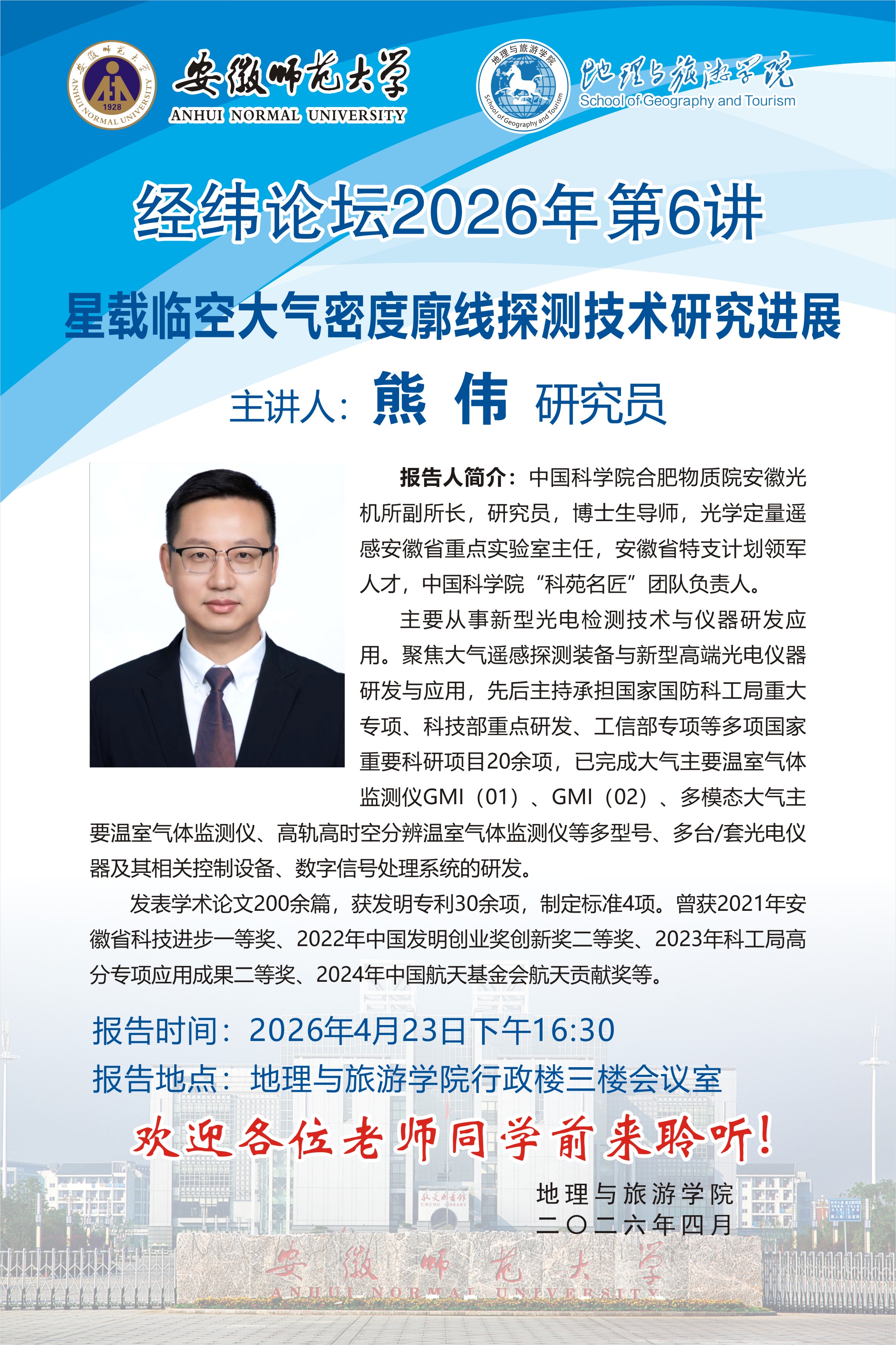 【学术预告】经纬论坛第102讲: 星载临空大气密度廓线探测技术研究进展